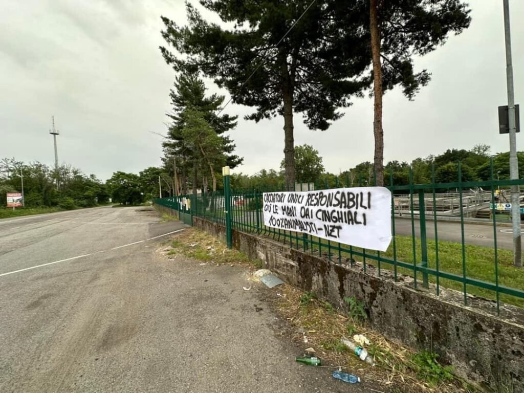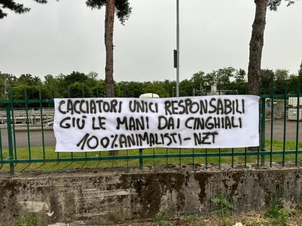Nel pomeriggio di mercoledì 19 giugno, è stato affisso uno striscione sui cancelli del depuratore sulla provinciale Rescaldina / Saronno, per ricordare ai cittadini chi sono i veri responsabili dell’introduzione dei Cinghiali nei boschi e parchi, diventati veri e proprio campi di battaglia.