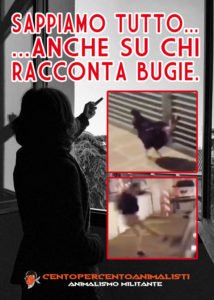 Temiamo che il povero Animale sia morto la sera stessa per i colpi e le sevizie subite e i “salvatori” non ce l’hanno raccontata giusta, per pura “fatalità” hanno dichiarato che la Gallina era salva e scattato foto solo il giorno dopo, quando il vile gesto degli imbecilli aveva fatto il giro d’Italia, inoltre non hanno chiamato nessuno quella sera per denunciare il fatto.