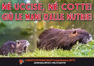 Noi pensiamo che tutti gli Animali siano uguali, in quanto esseri viventi e senzienti, e nessuno dovrebbe venir ucciso e mangiato. Non c’è differenza tra mangiare un Pollo, un Maiale o un Manzo, o mangiare un Panda o un Cane: è sempre sbagliato. Ma troviamo che non sia il caso di aggiungere nuove specie alle già troppe che vengono ogni giorno squartate e messe in vendita. Pensiamo che l’approccio di una persona civile verso un Animale dovrebbe essere diverso dal pensare a mangiarlo. Questo vale per le Nutrie come per qualsiasi altro Animale. Le Nutrie sono già perseguitate da anni con una campagna di odio basata su falsità ignoranza e disinformazione, dietro la quale ci sono sempre i cacciatori, bramosi di uccidere, non importa chi.