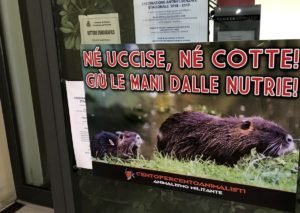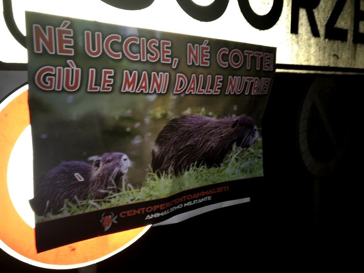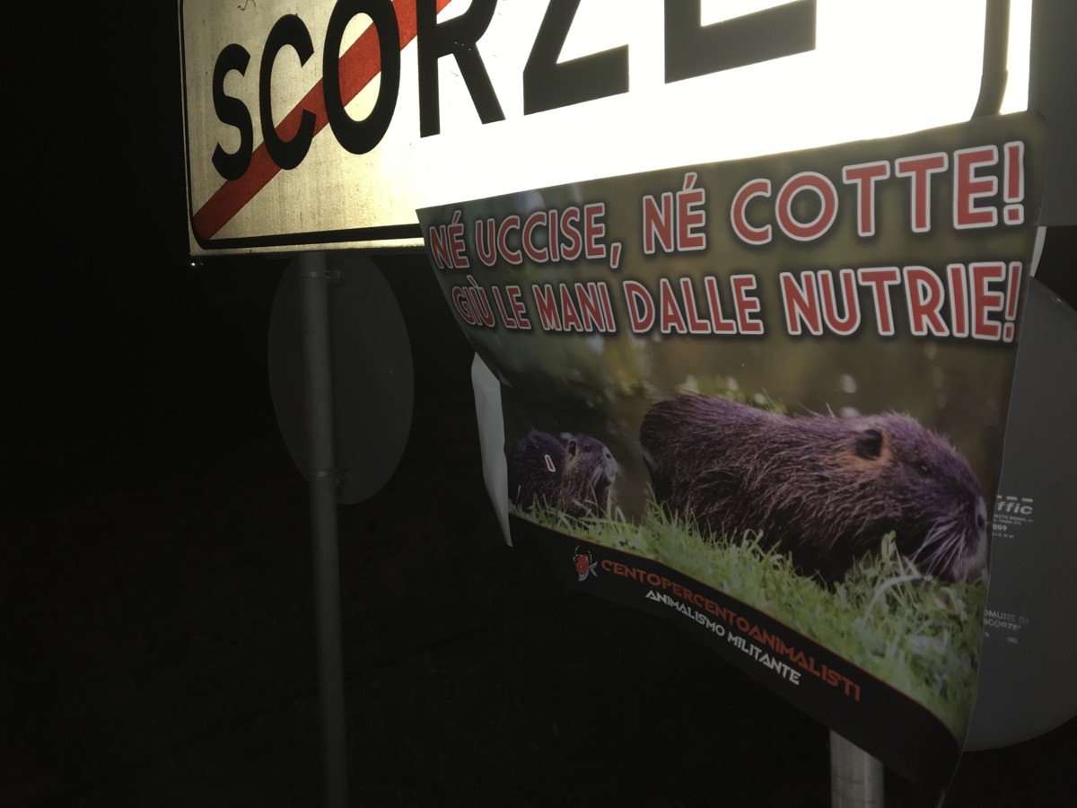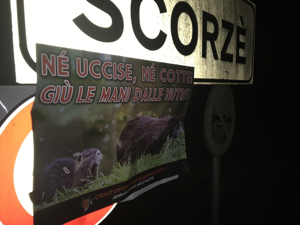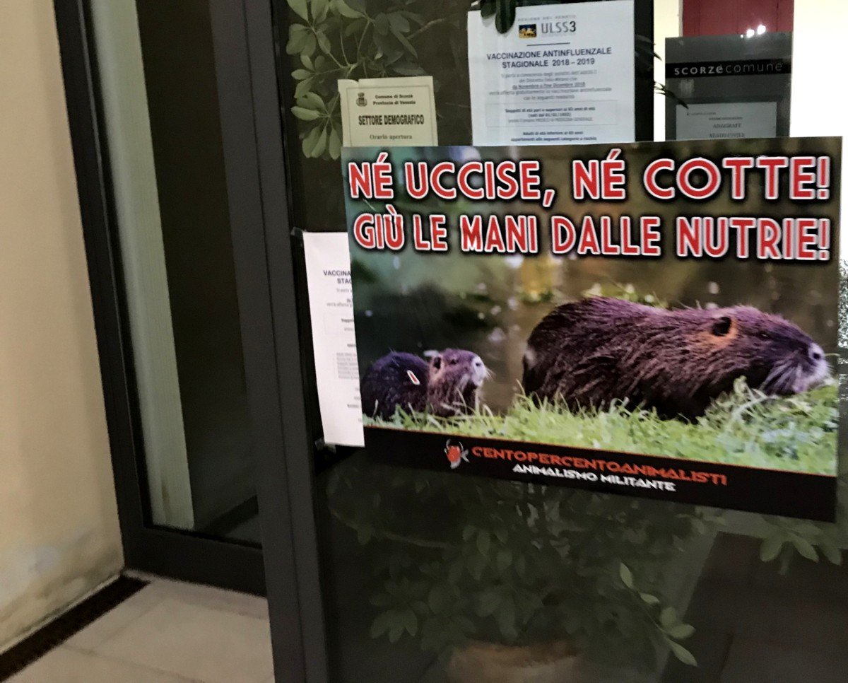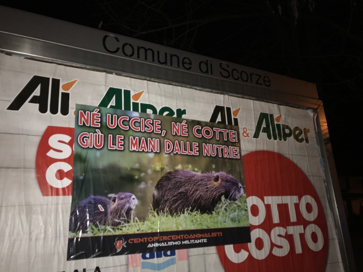 giù le mani dalle Nutrie – tappezzato il municipio di Scorzè (Venezia)