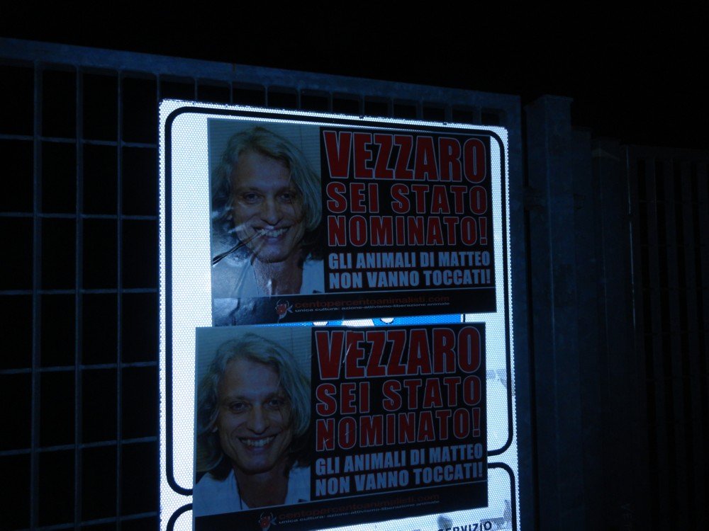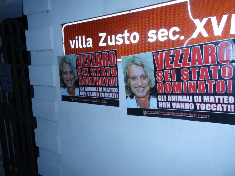 Gli animali di Matteo non devono morire – tappezzato il municipio di Vigodarzere (PD) vs il sindaco Vezzaro