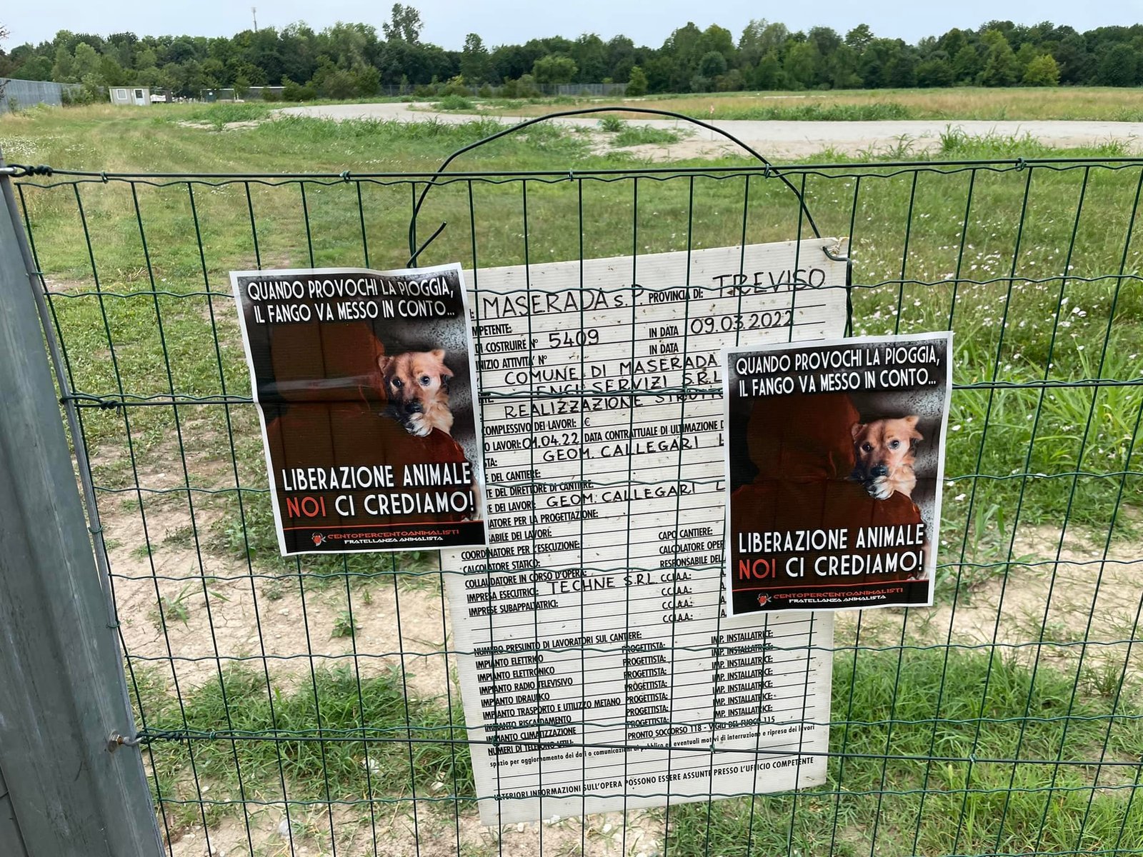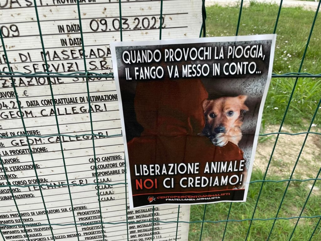 Militanti di CENTOPERCENTOANIMALISTI, appurata la latitanza delle istituzioni e gli scarsi risultati della protesta popolare, nel primissimo pomeriggio di mercoledì 22 giugno, sono entrati in azione tappezzando il “cinodromo” e l’ingresso del Municipio di Maserada, affiggendo locandine adesive con uno slogan facile da interpretare “quando provochi la pioggia, il fango va messo in conto”. Da oggi in poi, ognuno si prenderà la responsabilità delle proprie azioni…
