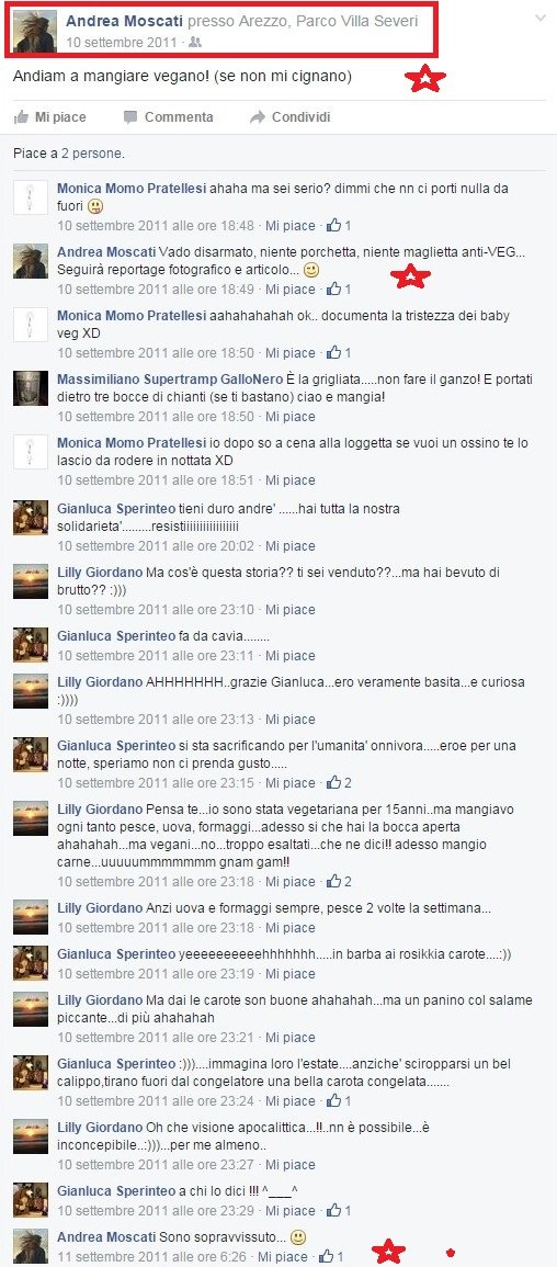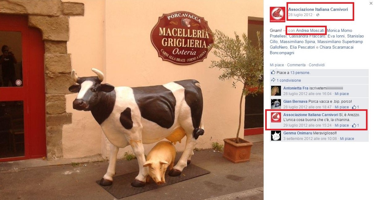 La pagina “associazione carnivori”, Andrea Moscati e Arezzo…