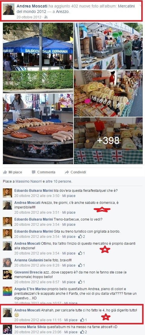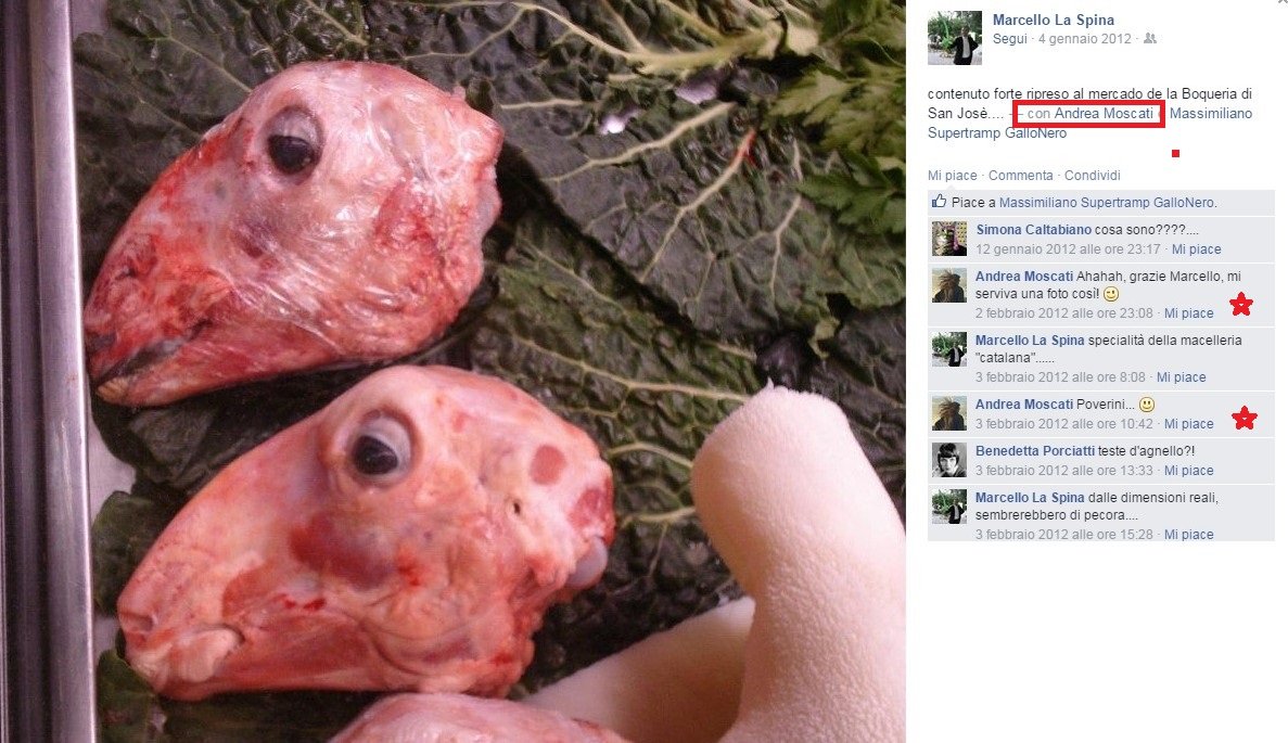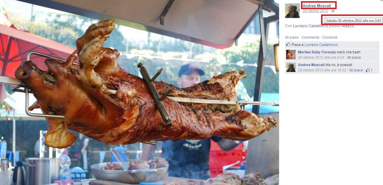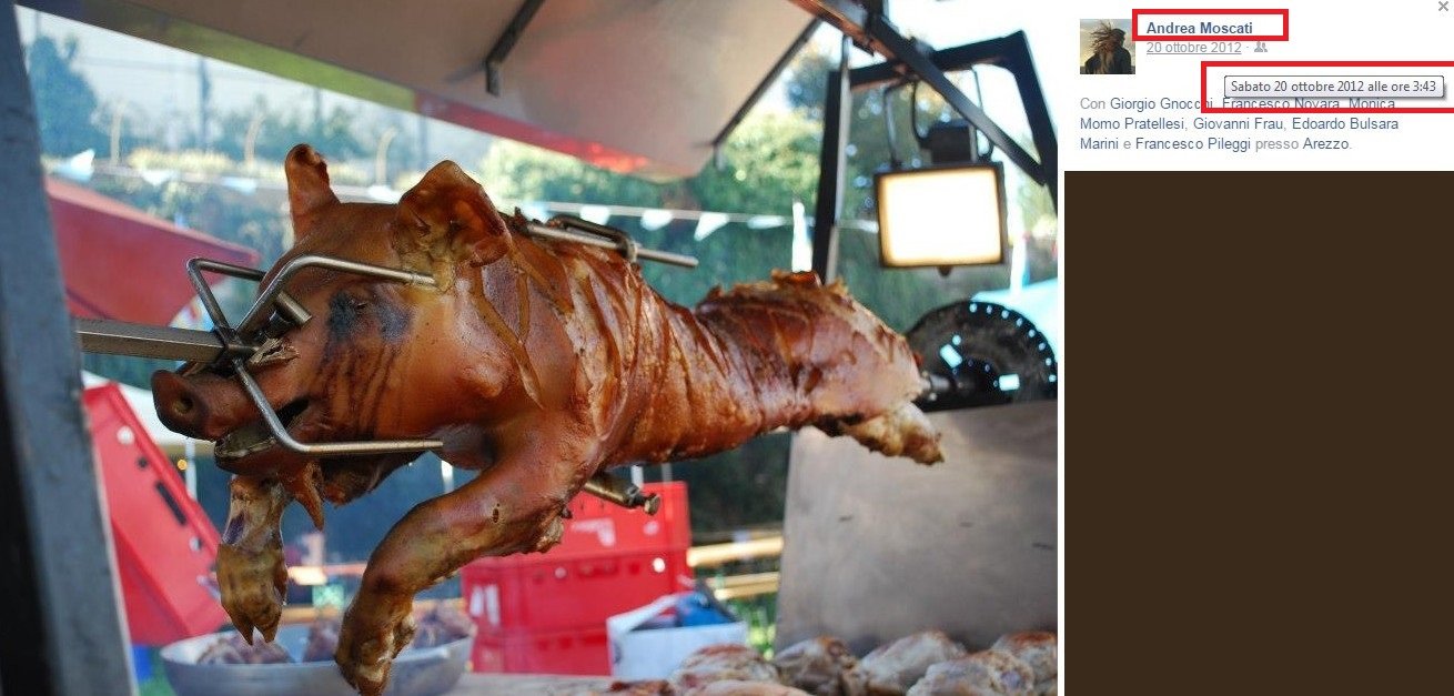 LE FOTO CHE INCHIODANO IL NOSTRO EROE. Nella notte del 20 ottobre 2012 Andrea Moscati pubblica nella sua bacheca alcune foto. OSSERVATE BENE LA DATA, IL LUOGO E SOPRATTUTTO L’ORA.