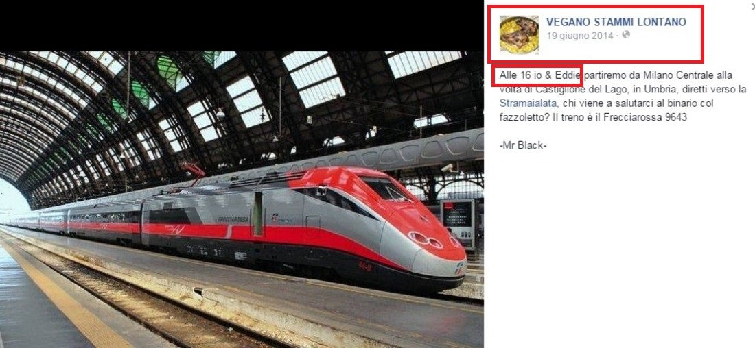 …Talmente bene che la sua passione per i treni lo tradisce ancora una volta, la voglia pazza di pubblicare la foto del freccia rossa nella bacheca di vegano stammi lontano è troppo forte…