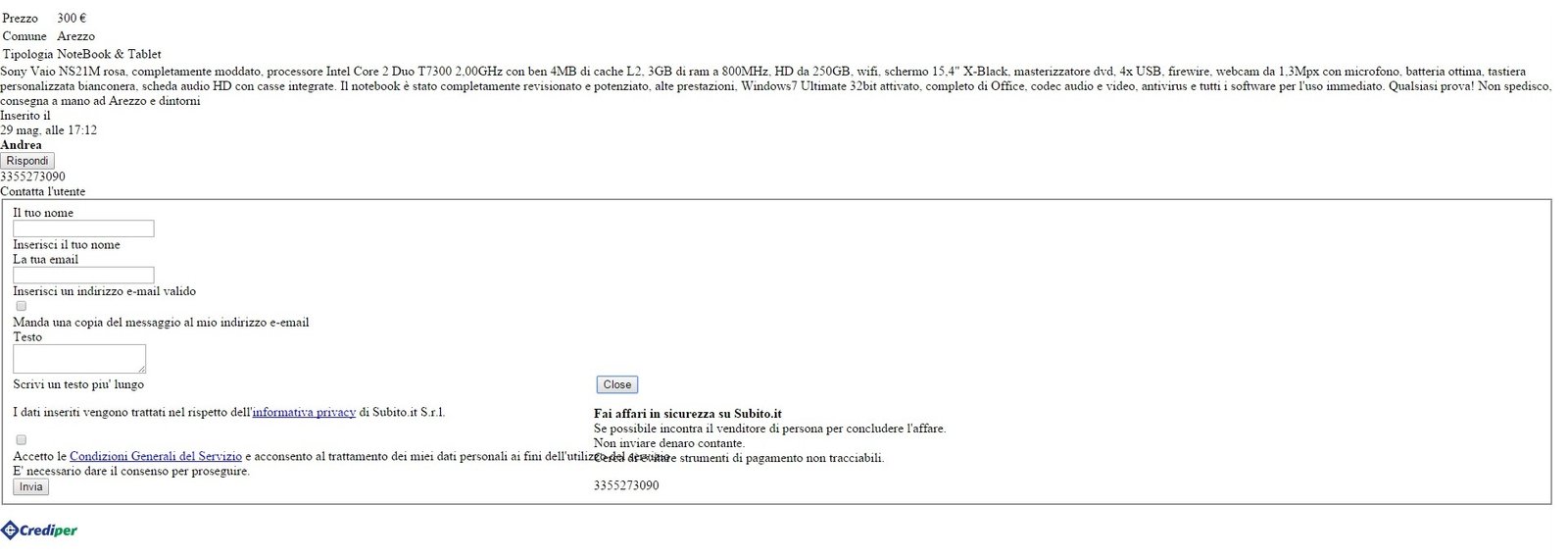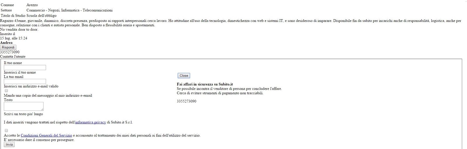 Annunci vari pubblici di Andrea Moscati con il suo numero di telefono