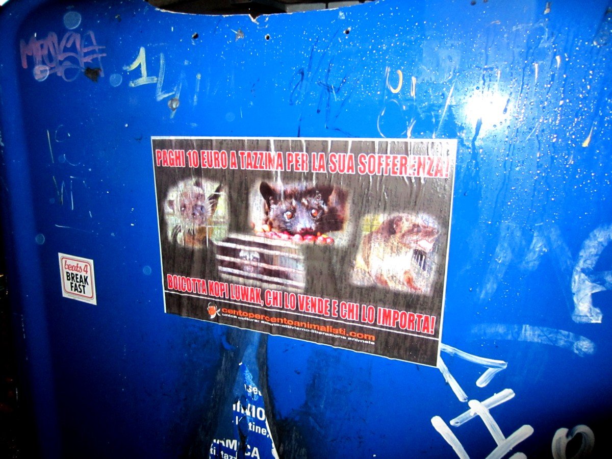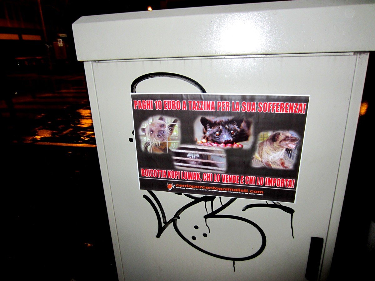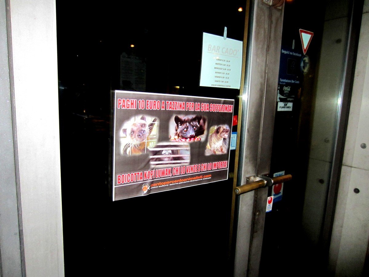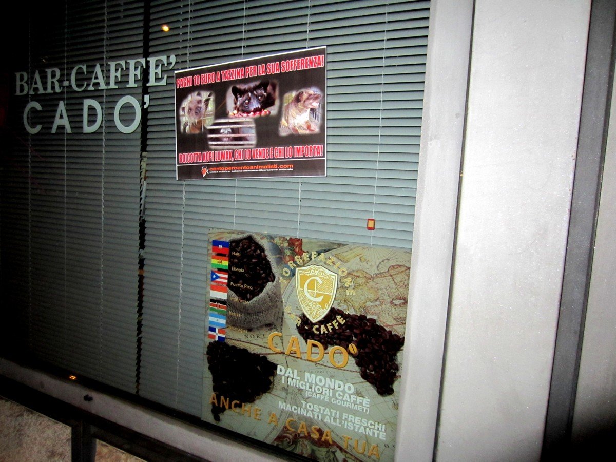 Kopi Luwak il caffè della sofferenza – tappezzato il “Cadò” a Padova