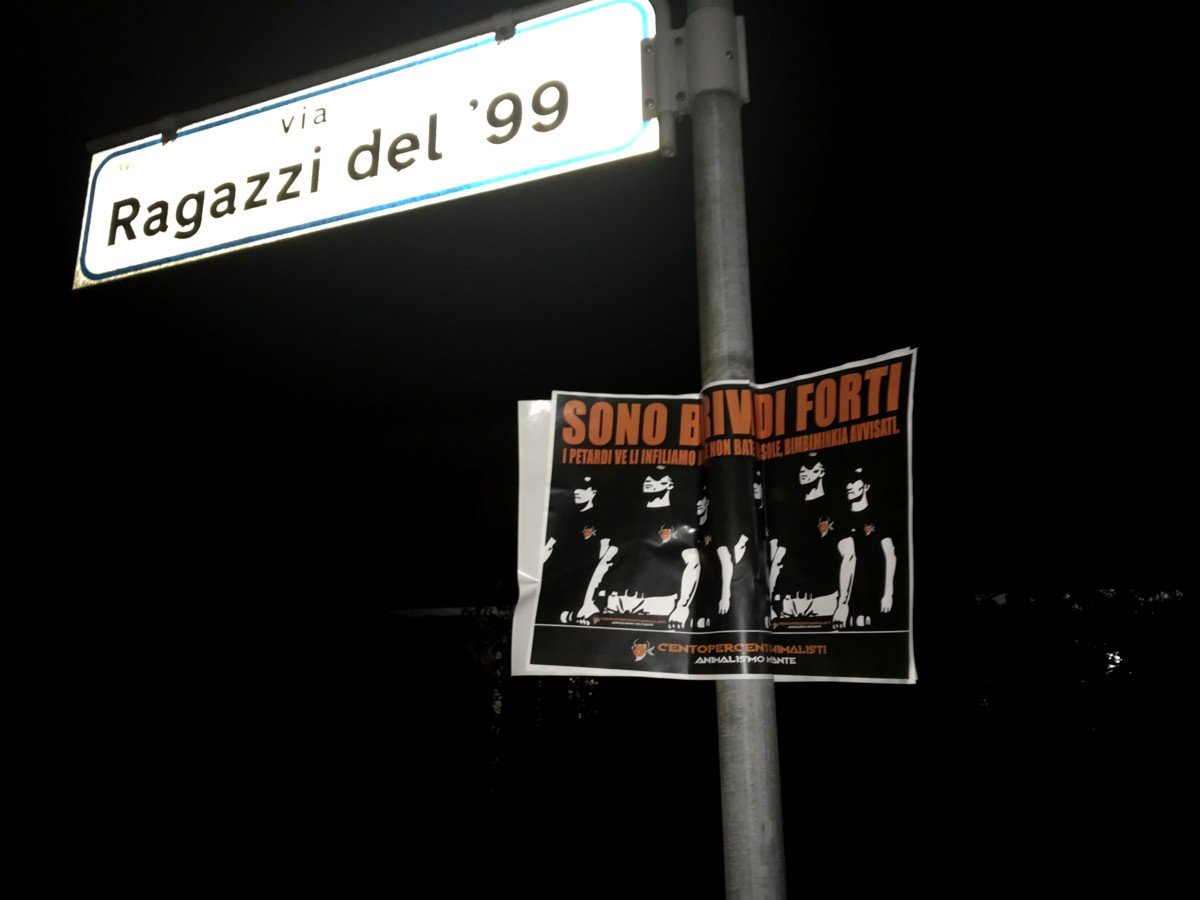 Nostri militanti da oggi in poi monitoreranno la zona; intanto, nella notte tra il 21 e il 22 novembre, hanno affisso delle locandine adesive dirette ai piccoli idioti nella zona della scuola…