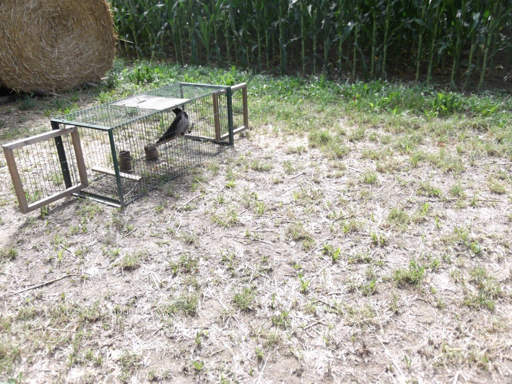 I nostri militanti hanno individuato nei pressi di Mestre un contadino che teneva nei suoi campi ben tre gabbie-trappola, ognuna doppia, molto probabilmente abusive. Dentro due gabbie c’erano una Gazza e una Cornacchia, usate come richiamo; tutte tre le trappole erano innescate e con cibo per attirare altri Uccelli…