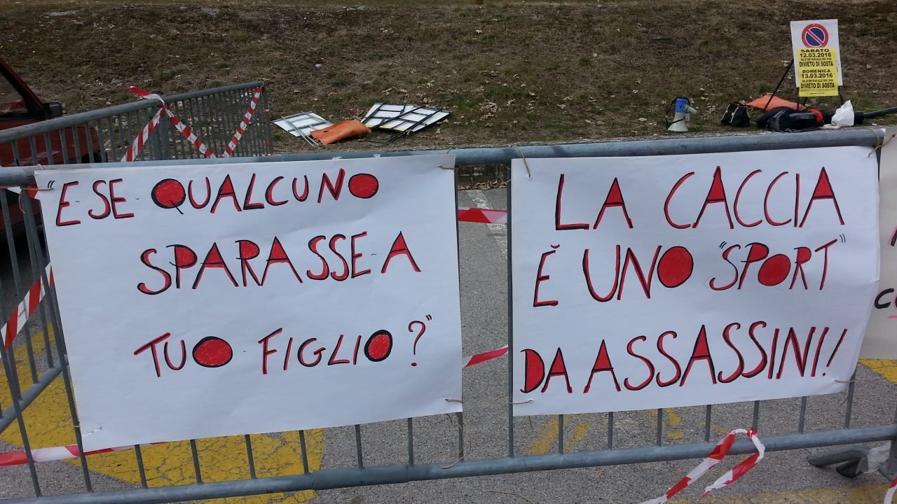 La questura di Belluno con questo “giochino” delle autorizzazioni ha garantito la tranquillità e serenità ai cacciatori e pescatori che si sono recati in fiera a Longarone, i quali non hanno beccato nessun insulto ed hanno potuto solo leggere cartelli di “protesta” degni dell’animalaro “made” scuola d’infanzia numero uno dell’anno.