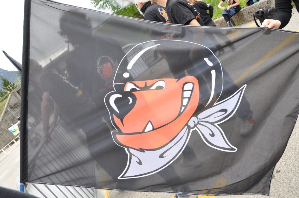 Altri impavidi sbevazzoni, che facevano gesti offensivi passando in auto, hanno ricevuto qualche buon “gavettone” (e non solo) attraverso i finestrini aperti. Come al solito, notevole lo spiegamento del reparto mobile della Polizia, Carabinieri e agenti Digos per contenere i nostri militanti, ad un certo punto i celerini infatti hanno dovuto spostare il loro mezzo dall’interno all’esterno della fiera per controllare meglio la situazione.