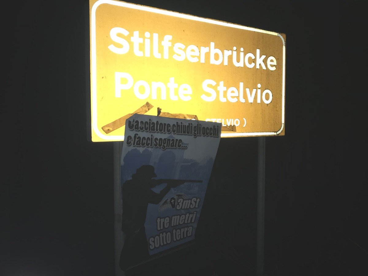 Militanti di CENTOPERCENTOANIMALISTI, nella notte tra il 12 e 13 novembre, hanno affisso in diverse zone del parco nazionale dello Stelvio, manifesti ironici di buon auspicio contro i cacciatori. La protesta non si fermerà.