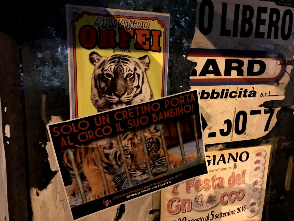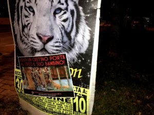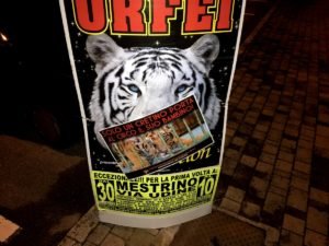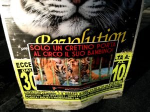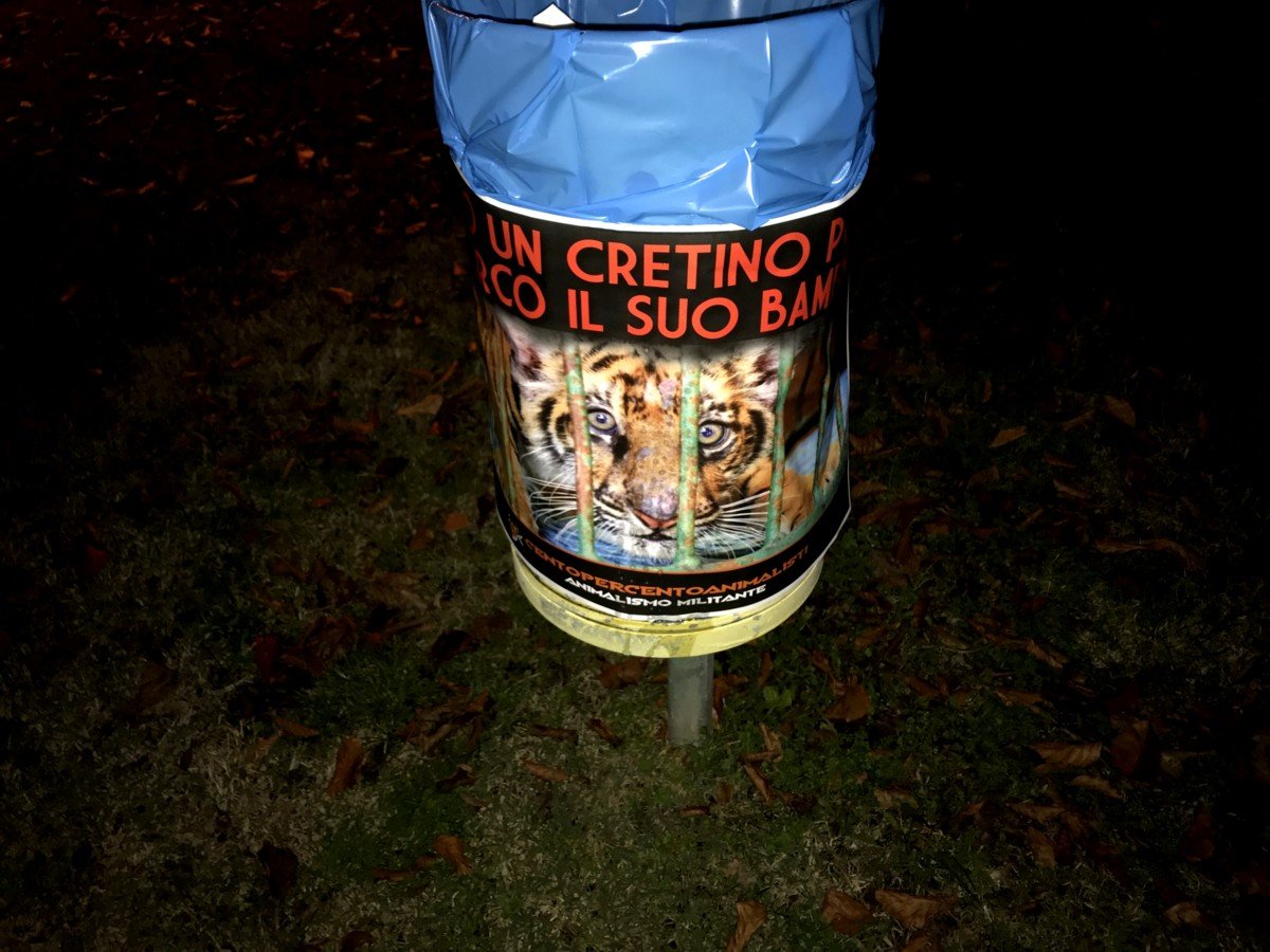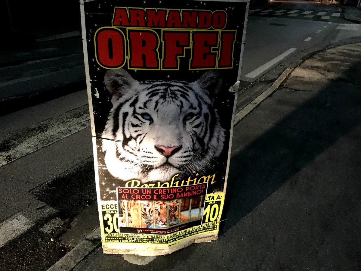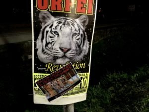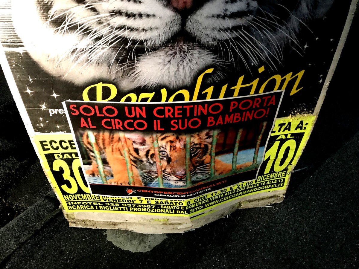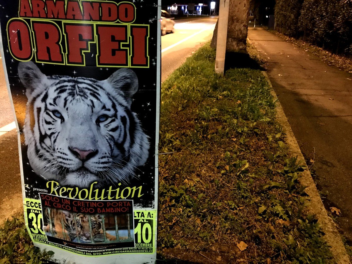 Nostri Militanti, nella notte tra il 27 e 28 novembre, hanno affisso locandine adesive nella zona, municipio compreso, rivolte proprio ai possibili spettatori complici delle sofferenze degli Animali e coperto gran parte dei cartelloni (abusivi?) circensi a Mestrino.