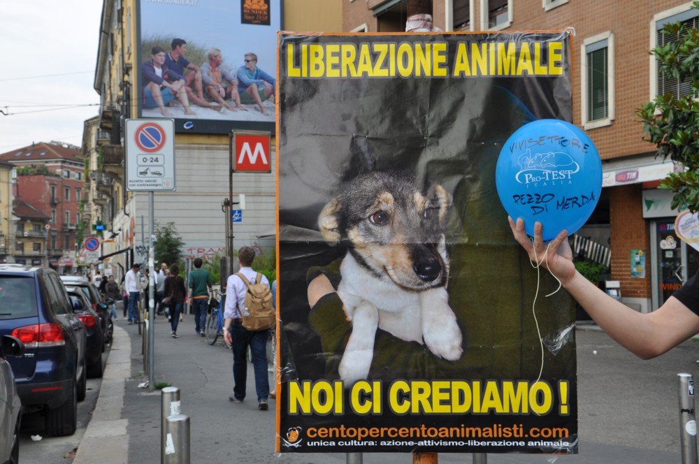 I sostenitori della vivisezione si sono riuniti a Milano sabato 1 giugno pomeriggio per difendere la loro pretesa di continuare a torturare e uccidere Animali.