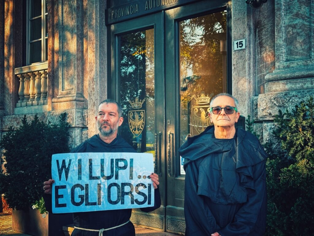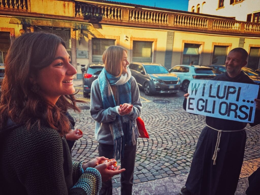 Lunedì pomeriggio 13 ottobre, alcuni militanti “Francescani”, si sono recati nel centro cittadino con un cartello, e hanno chiesto ai bambini con i genitori e ad alcune studentesse in transito cosa ne pensassero dei lupi e degli orsi. “Ovviamente tutti d’accordo sulla loro difesa”. Tutti gli “intervistati” sono stati premiati con delle caramelle Vegan.