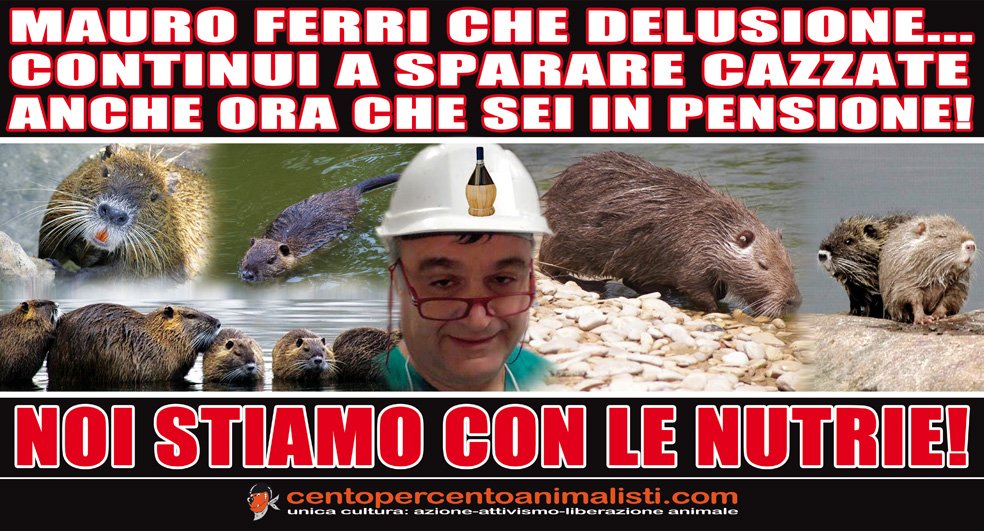 Seguendo i deliri del leghista Lorenzon, di cui ci siamo già occupati, il Ferri suggerisce di mangiare le Nutrie, e propone anche alcune ricette. Un altro incentivo allo sterminio dei simpatici roditori, che si inserisce nella generale campagna di odio che da anni viene montata contro questi Animali, giustificata da un cumulo di falsità.