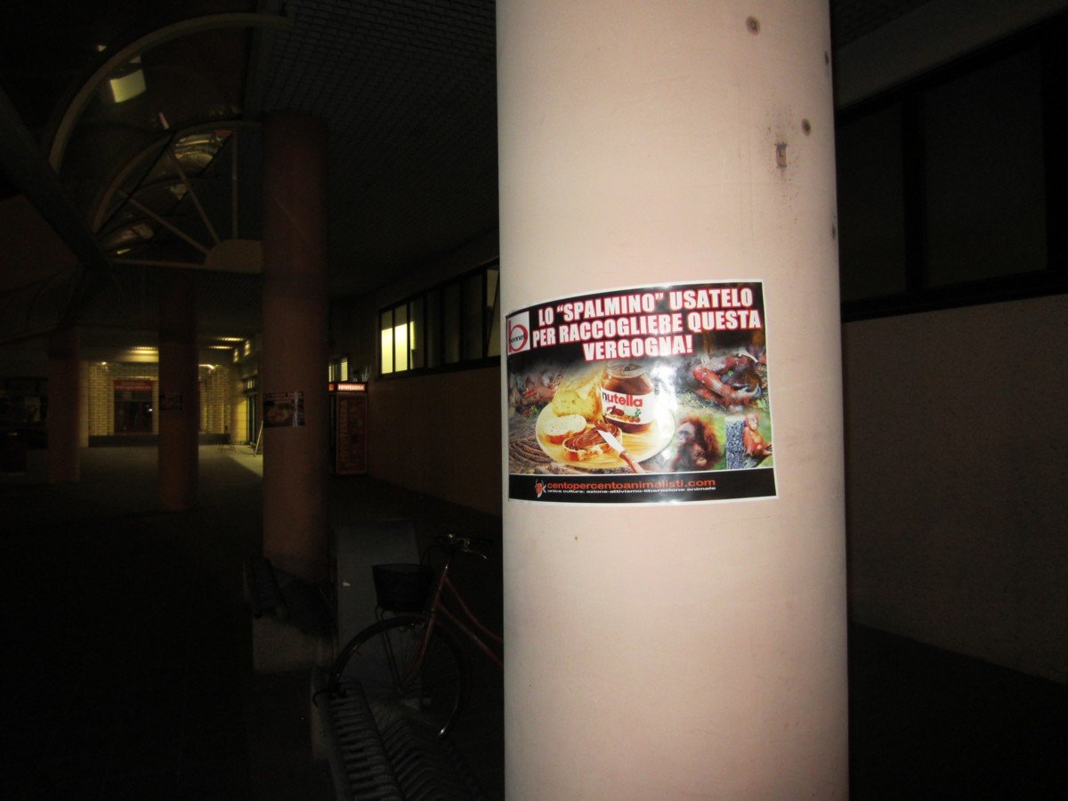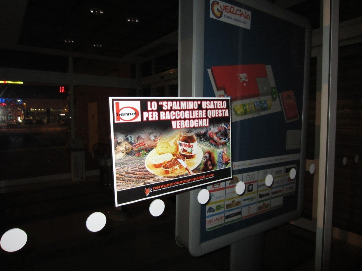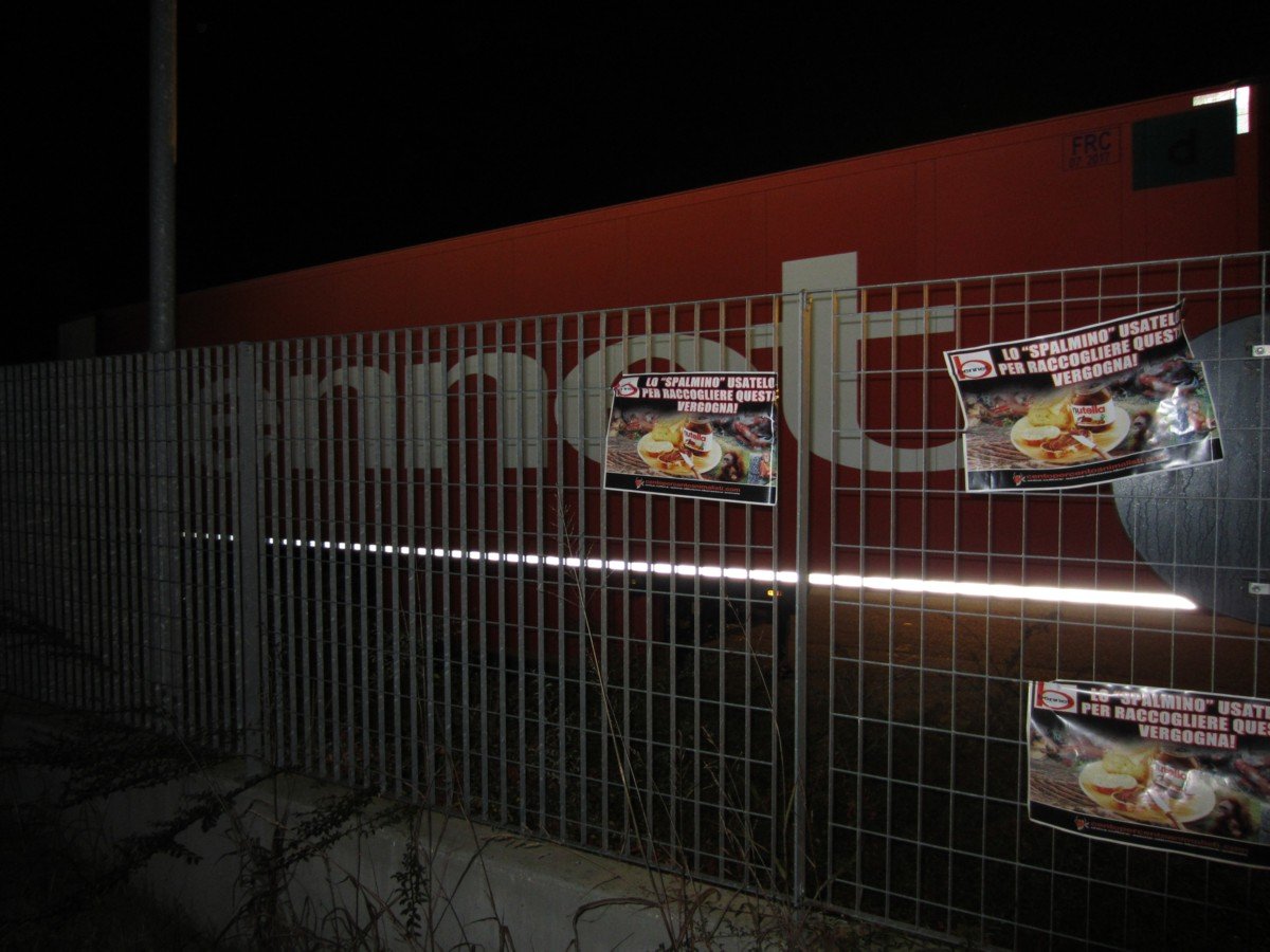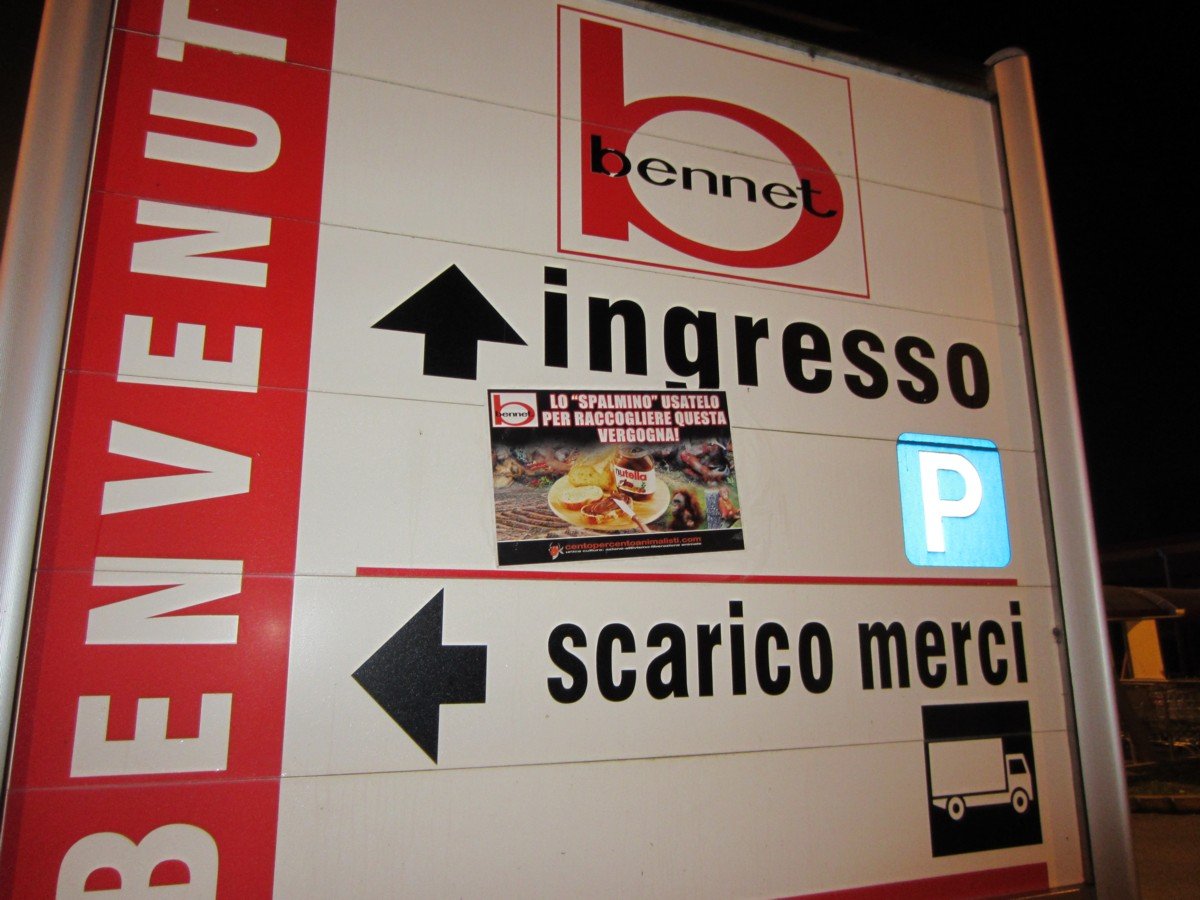 Per far capire alla dirigenza Bennet che nulla sfugge al nostro movimento, nella notte tra il 15 e 16 novembre militanti di CENTOPERCENTOANIMALISTI hanno appiccato locandine adesive ironiche nei Bennet a Ferrara, a Cento (Ferrara) e sui cancelli del deposito (blindatissimo) a San Bellino in provincia di Rovigo.