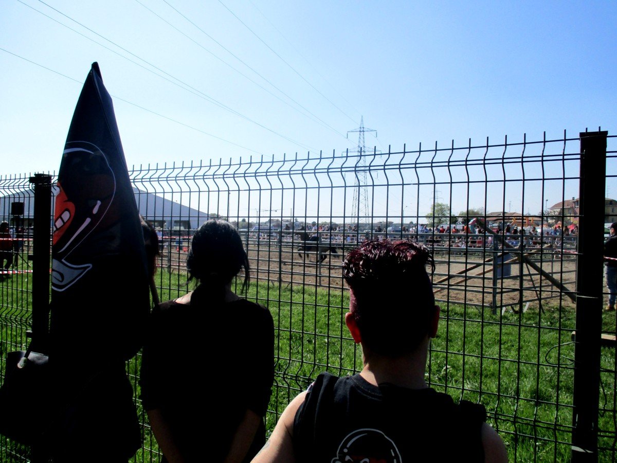 Non è mancato qualche attimo di tensione quando da dentro l’area festa alcuni protagonisti hanno risposto alle provocazioni degli animalisti (non è mancata anche qualche bestemmia) ma il tempestivo intervento degli uomini della polizia di Stato ha subito calmato gli animi. Le due fazioni sono state provvidenzialmente divise e la manifestazione e il presidio sono proseguite senza problema. Gli animalisti hanno scandito slogan ma non durante le prove “stiamo zitti solo per non innervosire e creare problemi agli animali”.