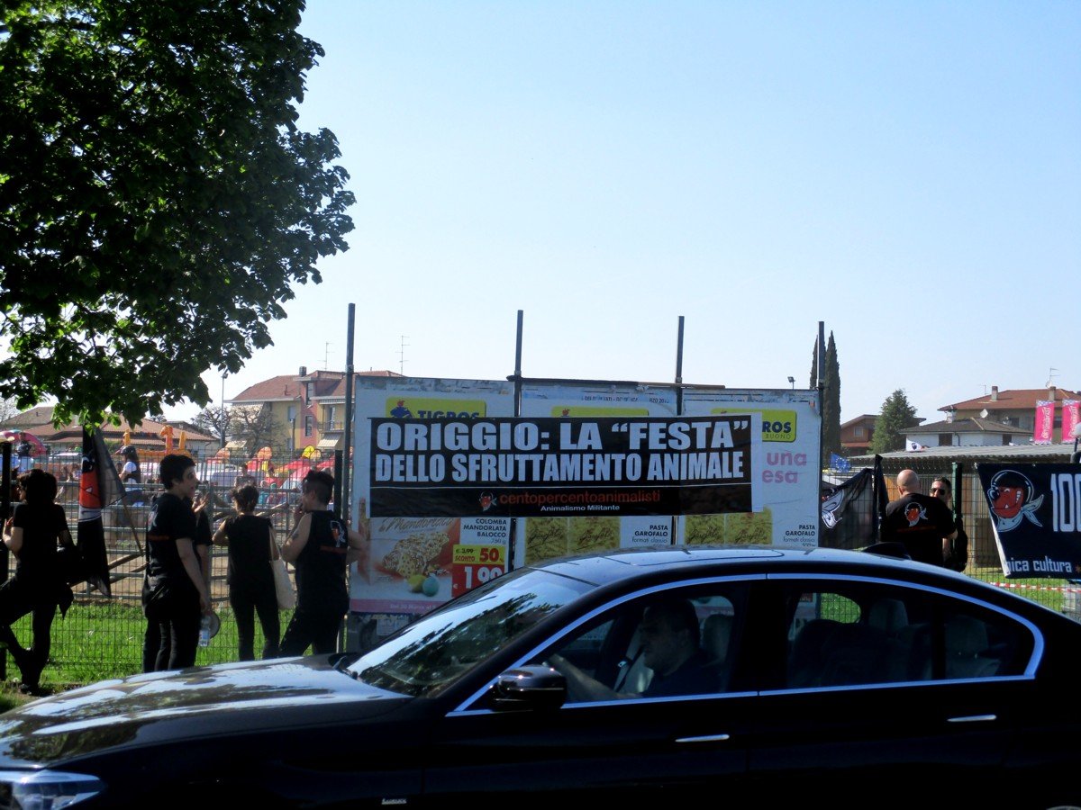 Questa volta la stampa ha anticipato il nostro resoconto, quindi chi più di un giornalista presente poteva descrivere in maniera imparziale il nostro presidio di “ripiego”? Domenica 22 aprile i nostri Miltanti si erano organizzati per presidiare le prove dei Cavalli a Legnano presso il maneggio “la Stella” dove poche settimane fa veniva ammazzato il Cavallo “Polveroso”.  Dopo il nostro blitz notturno della settimana scorsa, probabilmente i proprietari del maneggio hanno deciso di annullare le gare dei Cavalli previste per domenica 22 aprile, quindi è stata organizzata una protesta a Origgio (Varese), dove si tenevano delle esibizioni Equestri all’interno della fiera primaverile del bestiame.