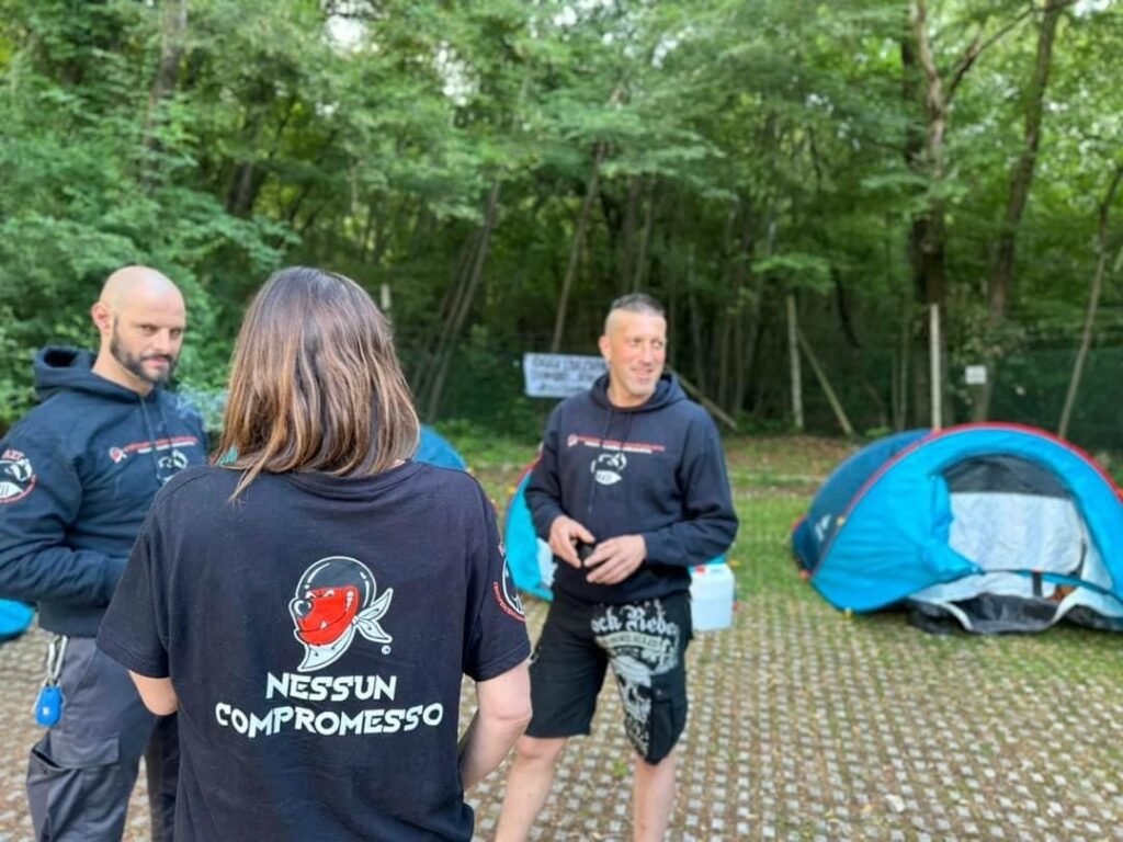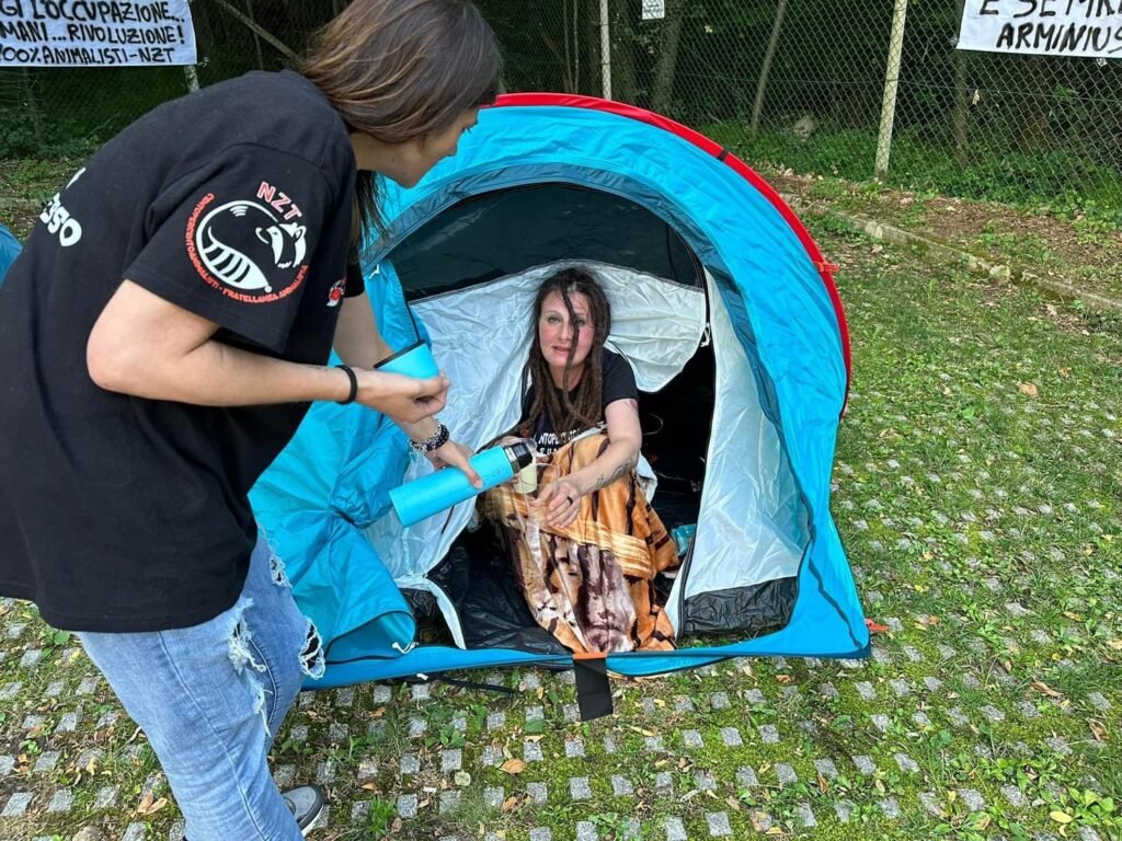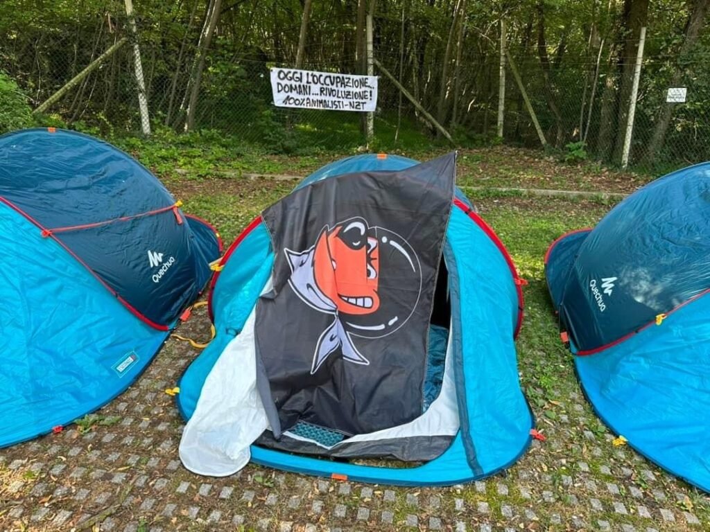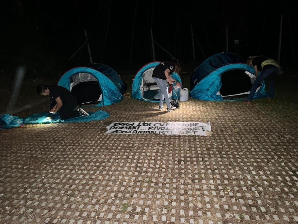 Ricordiamo che i nostri Militanti erano in otto, numero oltre il limite consentito dalla legge vs i raduni (rave, ecc. ecc.), non a caso via social, sono stati invitati gli Animalisti a non partecipare all’azione.