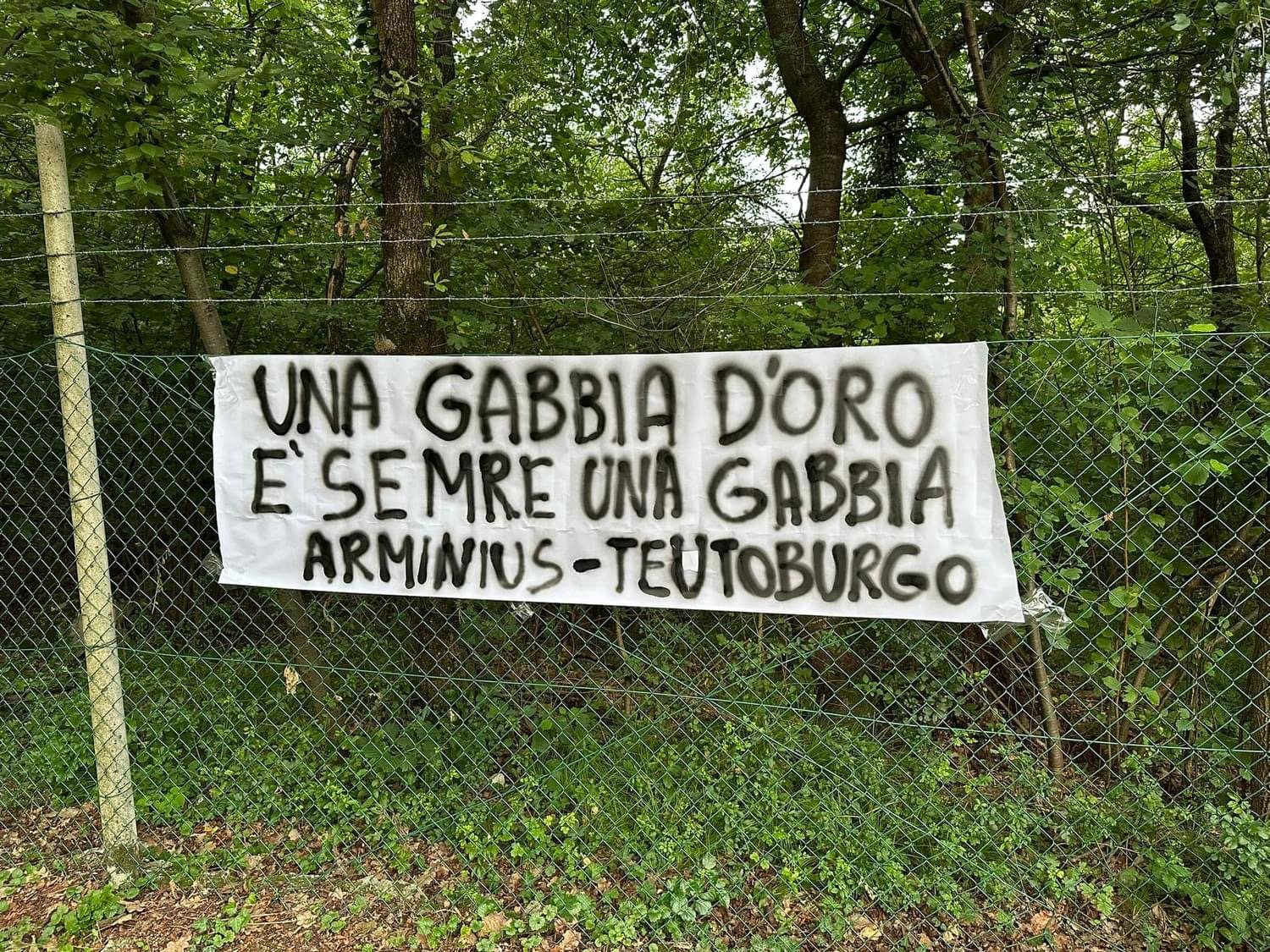 Lo striscione è stato posizionato a terra con delle pietre, nel caso si fosse presentato qualche bifolco a toglierlo (alle 2 tutto era stato pubblicato sulla nostra pagina social) … successivamente lo striscione all’alba è stato attaccato sulla rete del Casteller, le pietre sono rimaste per terra, non facciamo mai nulla a caso, ci siamo capiti.