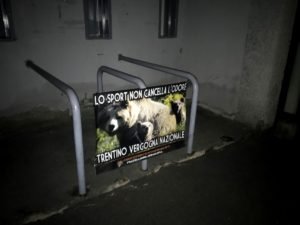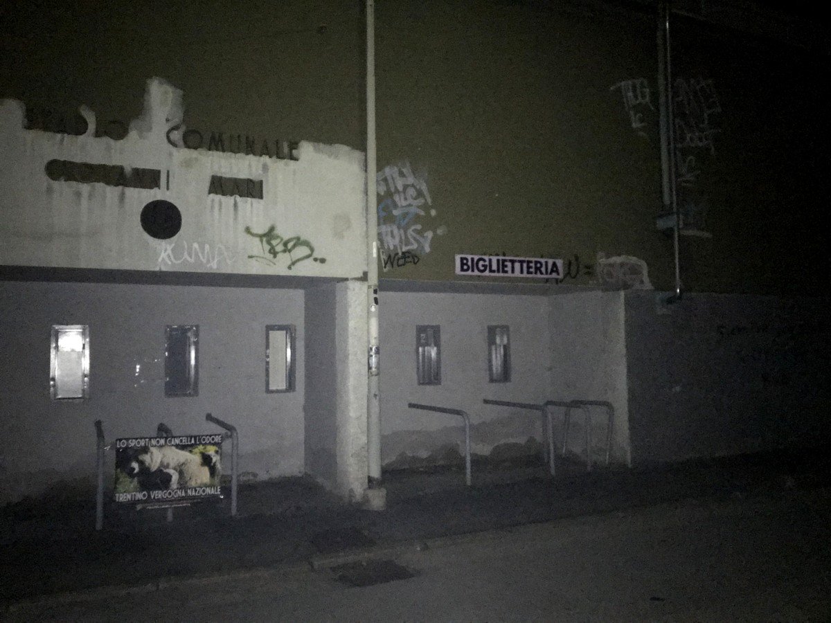 Centopercentoanimalisti con ogni mezzo a disposizione non permetterà che menzogne e vergogne del Trentino vengano dimenticate, ad iniziare dallo sport! Due squadre di calcio trentine di serie D giocheranno fuori casa: Levico Terme a Seregno il 30 ottobre e la Dro Alto Garda a Legnano il 3 novembre. Convinti che lo sport non cancella la vergogna, militanti di CENTOPERCENTOANIMALISTI, come già fatto in passato, nella notte tra il 28 e 29 ottobre, hanno tappezzato i rispettivi stadi a Seregno (stadio Ferruccio)  e Legnano (stadio Giovanni Mari) con manifesti di denuncia contro il Trentino “lo sport non cancella l’odore. Trentino Vergogna Nazionale”.