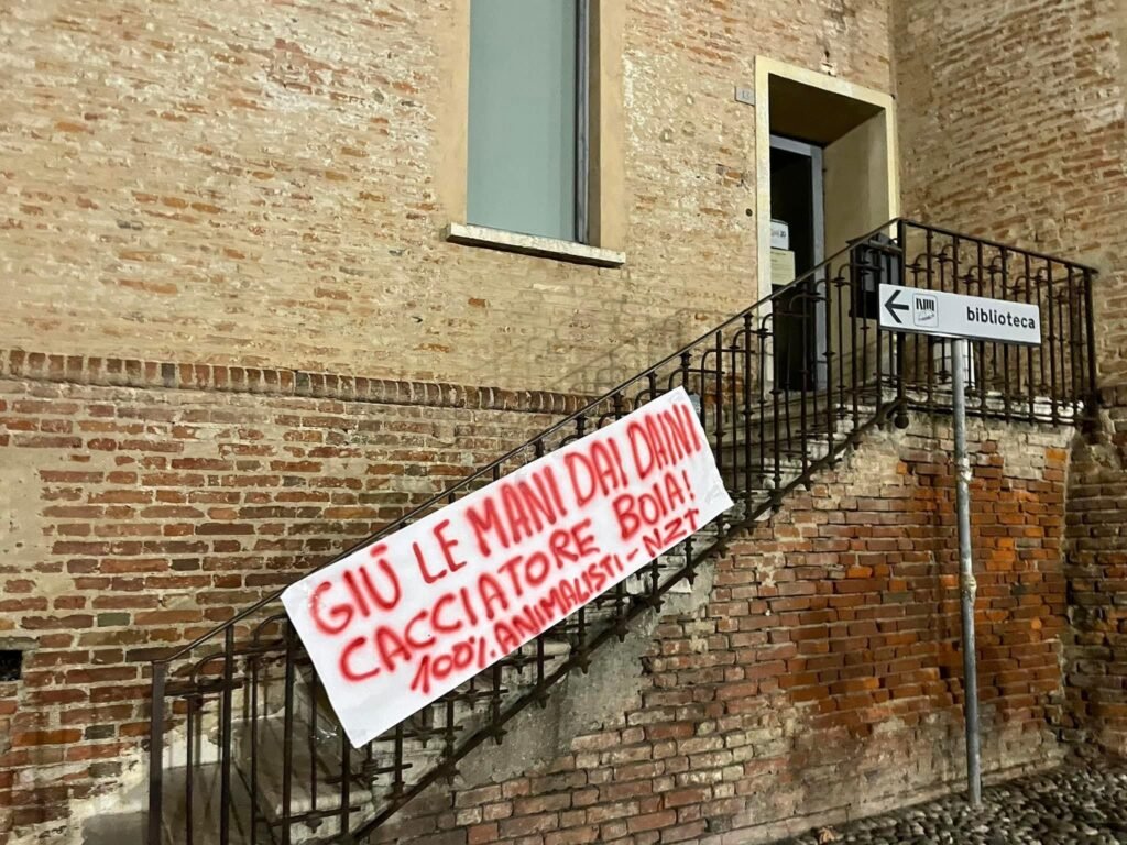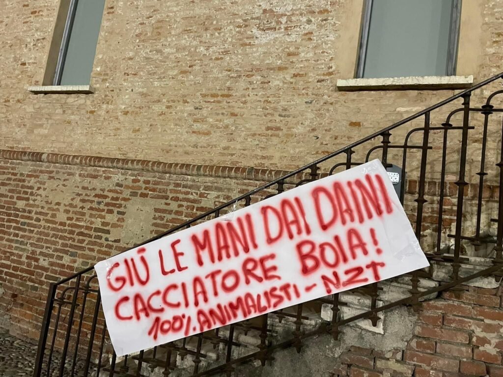 Nella serata del 25 ottobre, Militanti del Movimento Centopercentoanimalisti, hanno affisso uno striscione contro i cacciatori sui gradini della sede del parco Oglio nord a Orzinuovi (Brescia). Diciamo all’assessore Rolfi e a tutti i cacciatori che, se scateneranno un altro massacro di Animali liberi, non staremo a guardare.