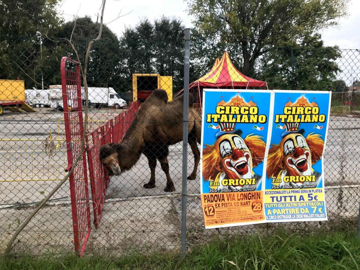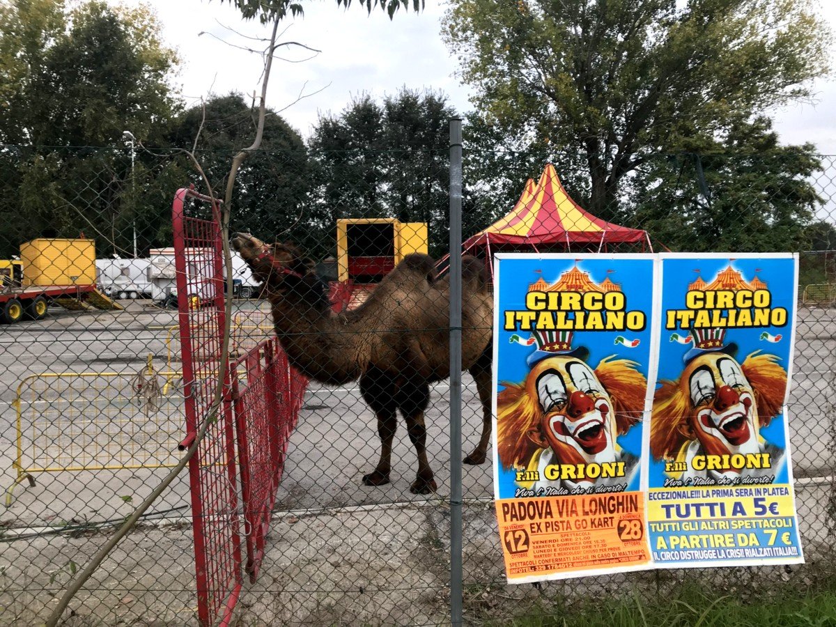 Si è attendato in sordina a Padova in via Longhin, il “Circo Italiano dei Fratelli Grioni”. Il quale è, lo dichiarano loro stessi, un circo equestre. Ma a Padova si presenta come “circo senza Animali”. Il che è assolutamente falso, gli Animali ci sono e sfilano pure durante lo spettacolo: un Cammello, un Lama, una Capretta, un Pony.