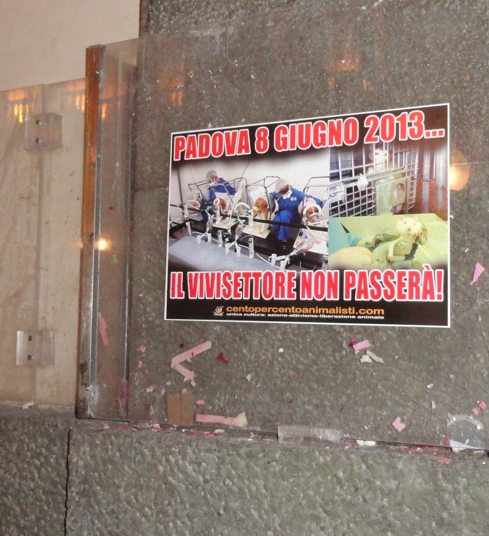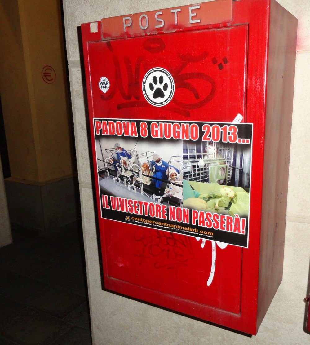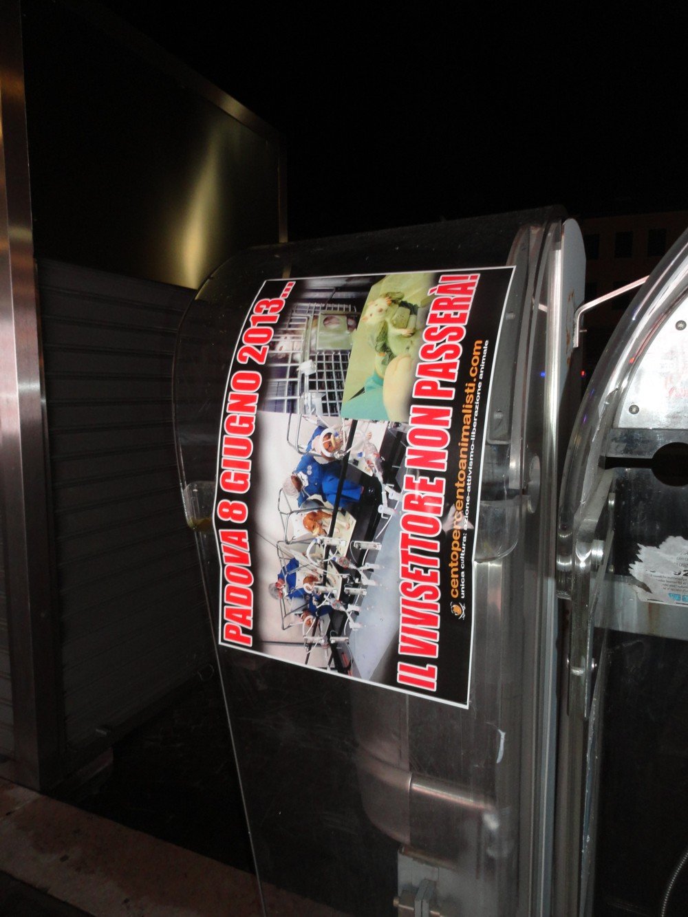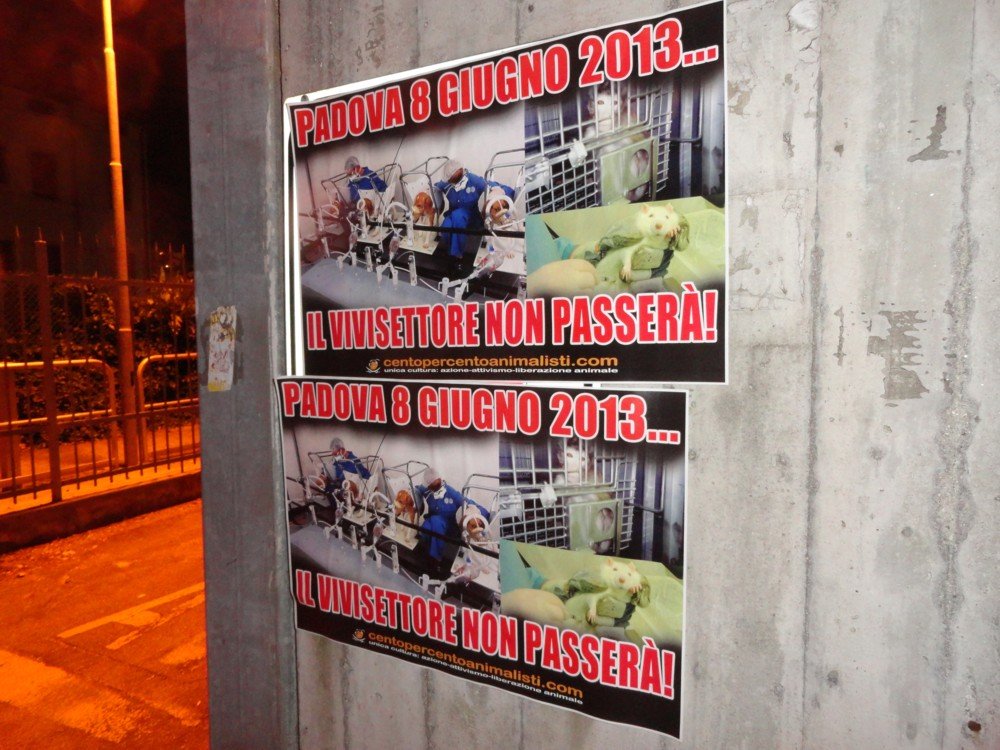 Nella notte tra il 4 e 5 maggio, attivisti di Centopercentoanimalisti hanno tappezzato la città di Padova con locandine adesive, stampate apposta per l’occasione. Tra i principali obiettivi, l’università di via Bassi, luogo dove si pratica la vivisezione e il centro storico…