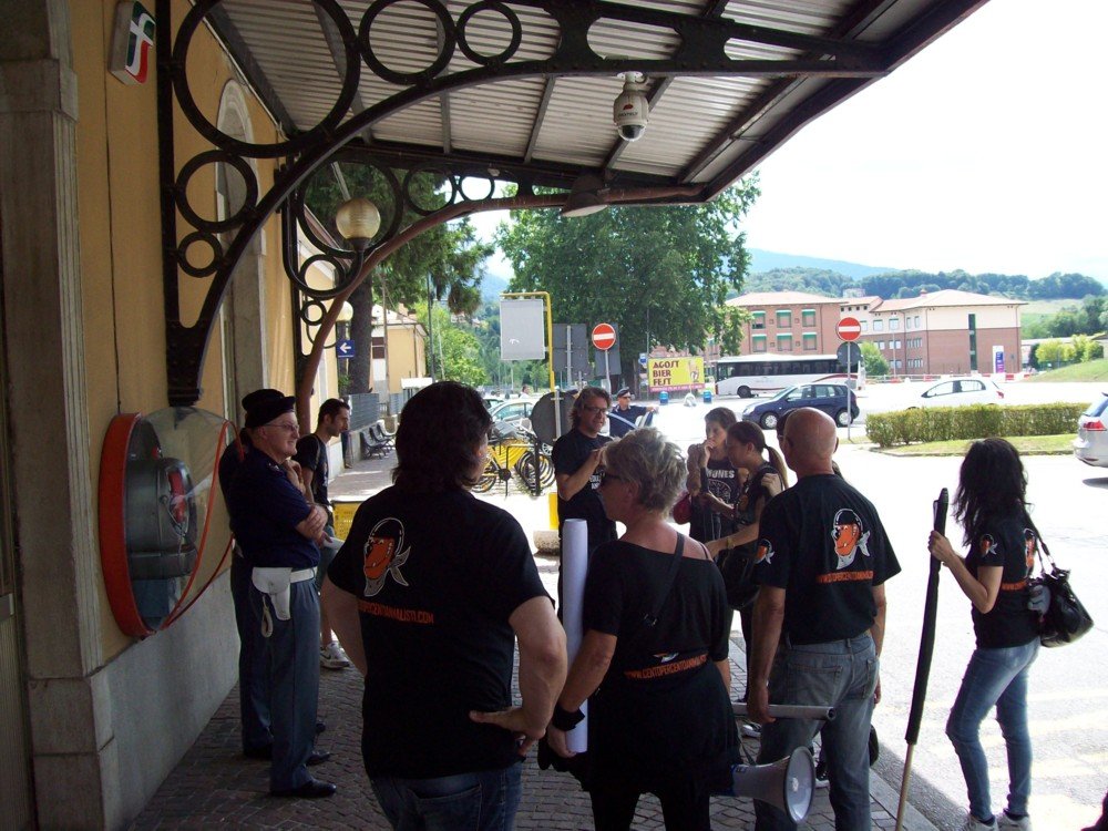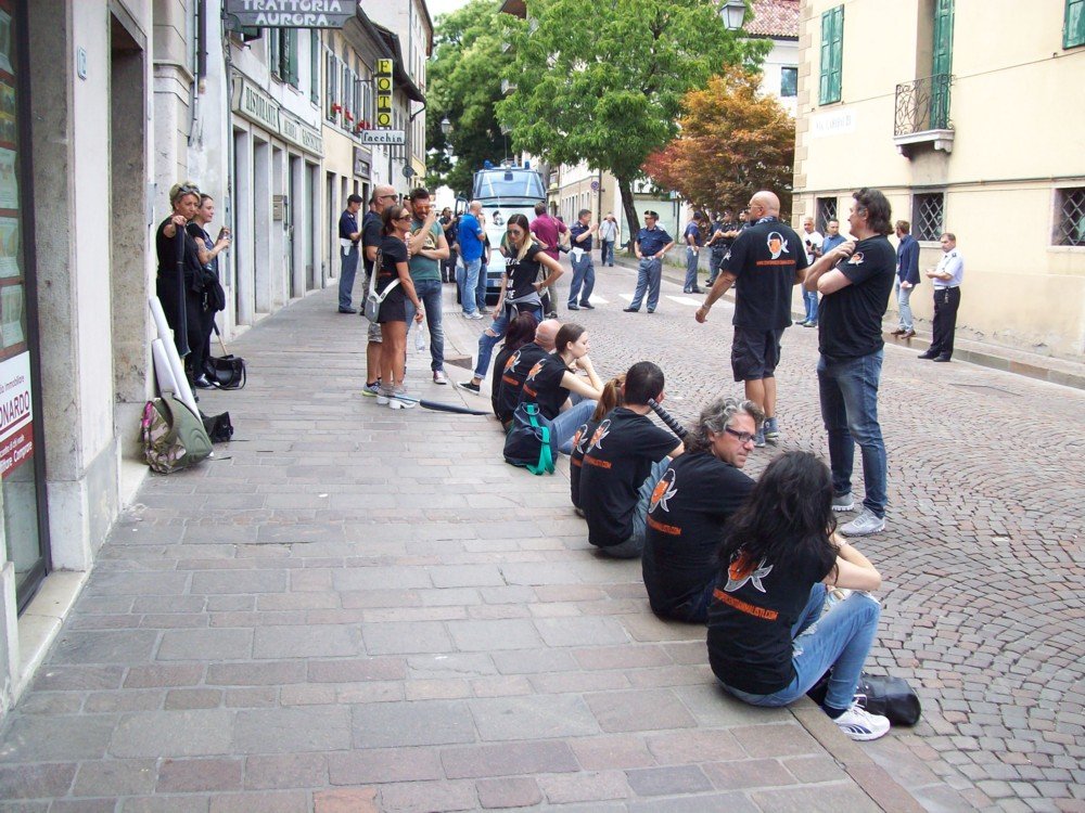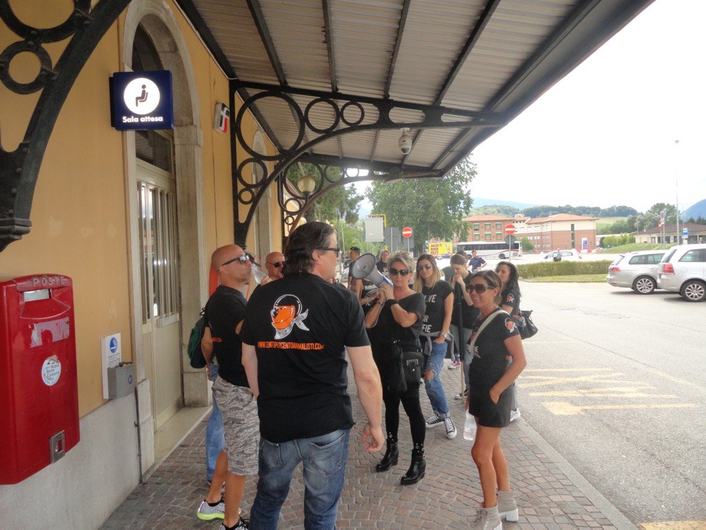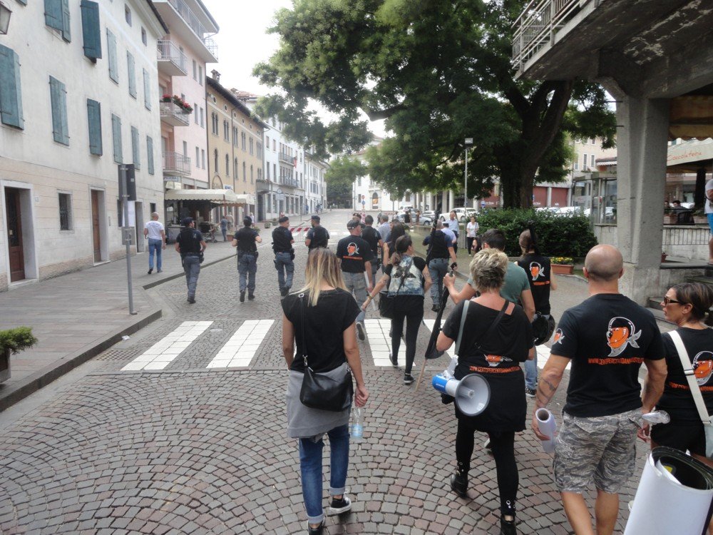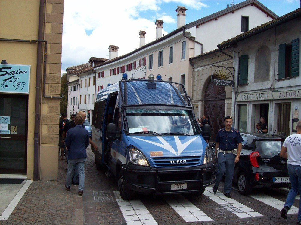 Che l’aria fosse “tesa” lo si è capito dall’arrivo dei nostri militanti in stazione dei treni a Feltre, in un primo momento le forze dell’ordine hanno vietato il passaggio per il centro storico, dopo, formati dei piccoli gruppi, i militanti si sono incamminati sotto l’occhio vigile dell’autorità competente. In pieno centro però, gli attivisti sono stati bloccati dal reparto mobile della Polizia di Stato.