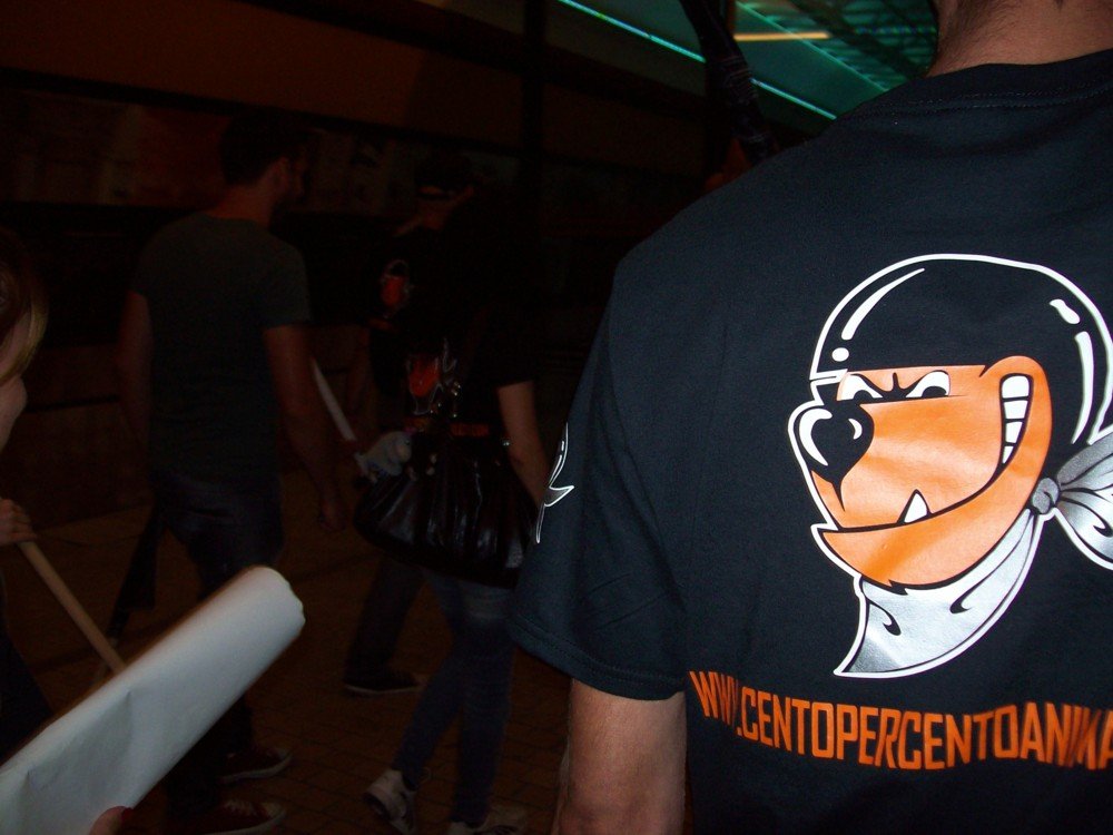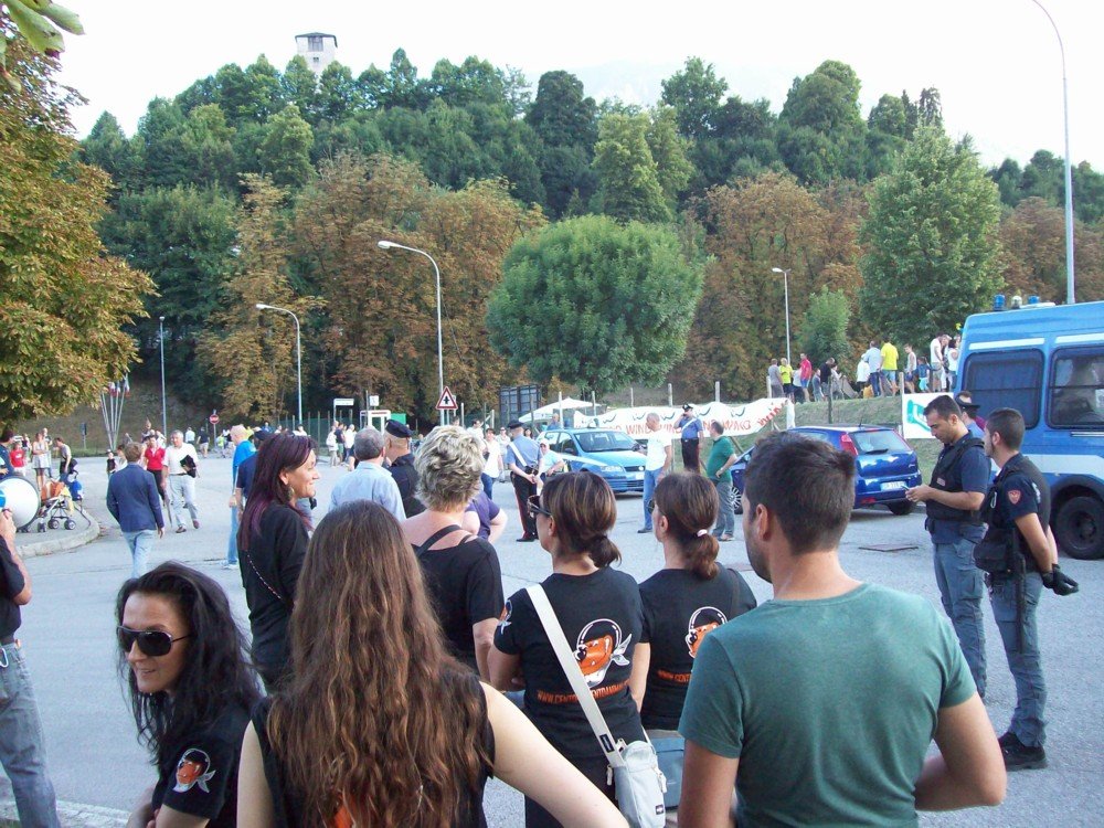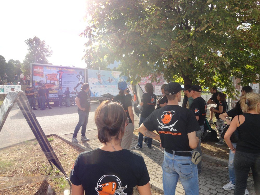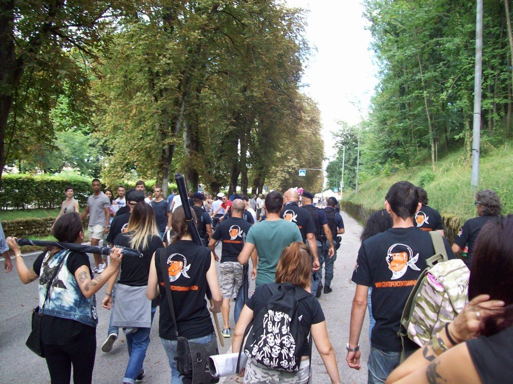 Numerosi i cori durissimi contro il presidente del palio di Feltre Stefano Antonetti. Quest’ultimo, nei giorni scorsi, tramite la stampa locale più servile d’Italia, aveva criticato il nostro gruppo per i modi “non conformi”. Antonetti si metta bene in testa una cosa: chi partecipa al suo evento che gronda di sangue, non si convince con un volantino o con le belle parole, ma solo rovinandogli la “festa”. Obiettivo ovviamente centrato, sia durante la manifestazione, sia all’uscita, le tensioni con il pubblico infatti, non sono mancate.
