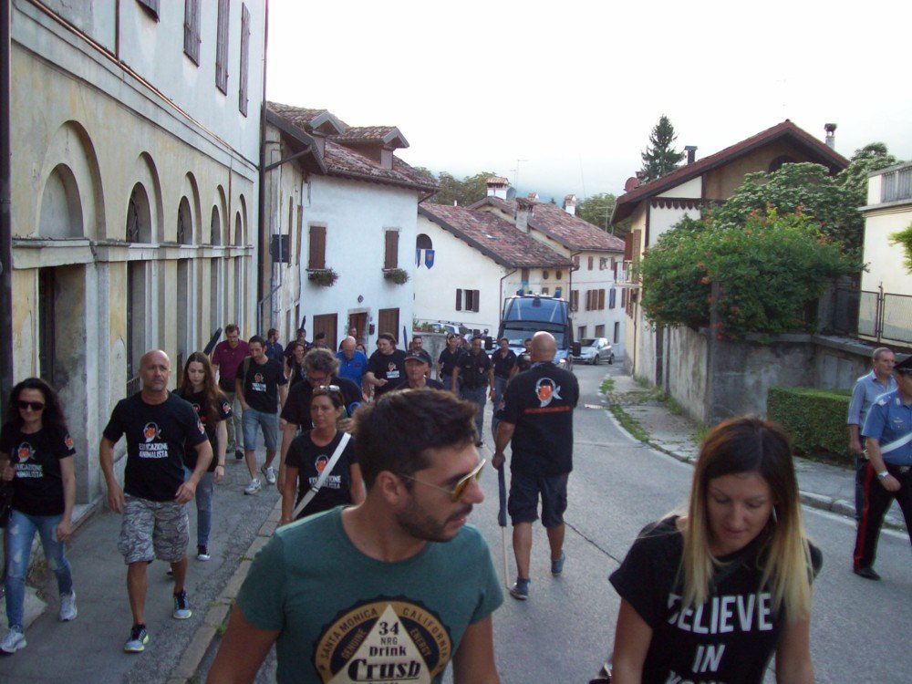 Oltre una ventina di militanti hanno urlato di tutto e di più contro gli organizzatori, i fantini e il pubblico del palio di Feltre che, ricordiamolo, causò la morte atroce nel 2007 a due cavalli.