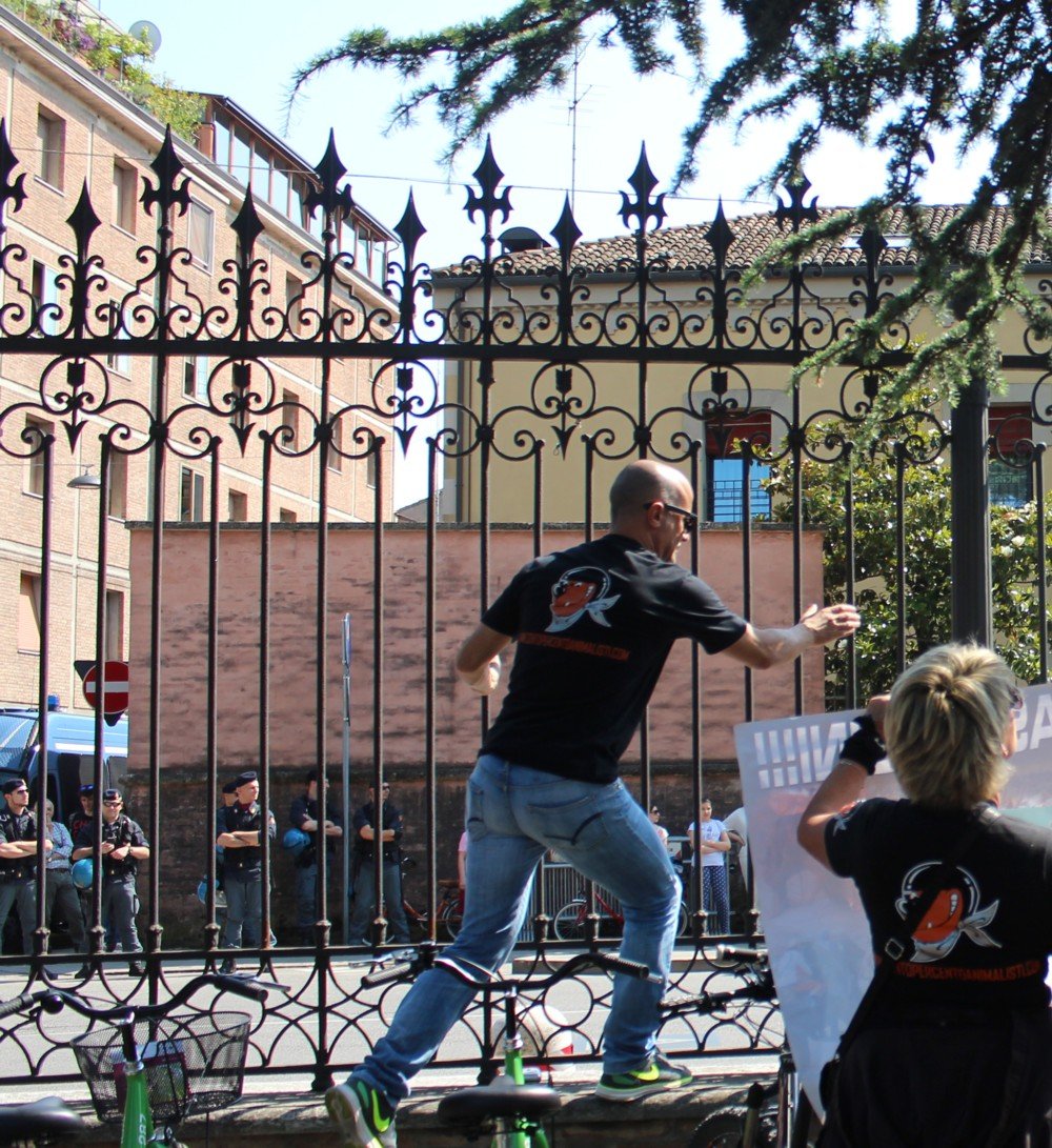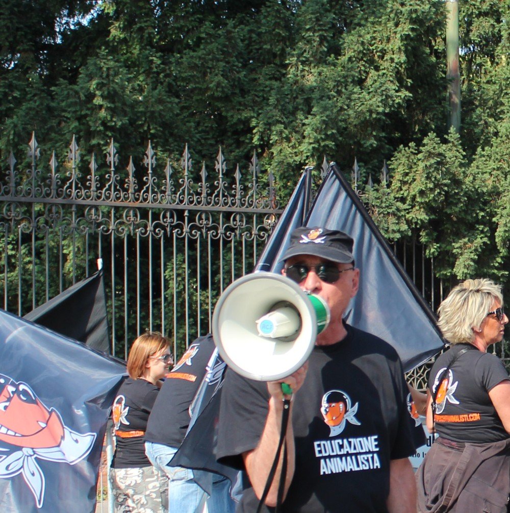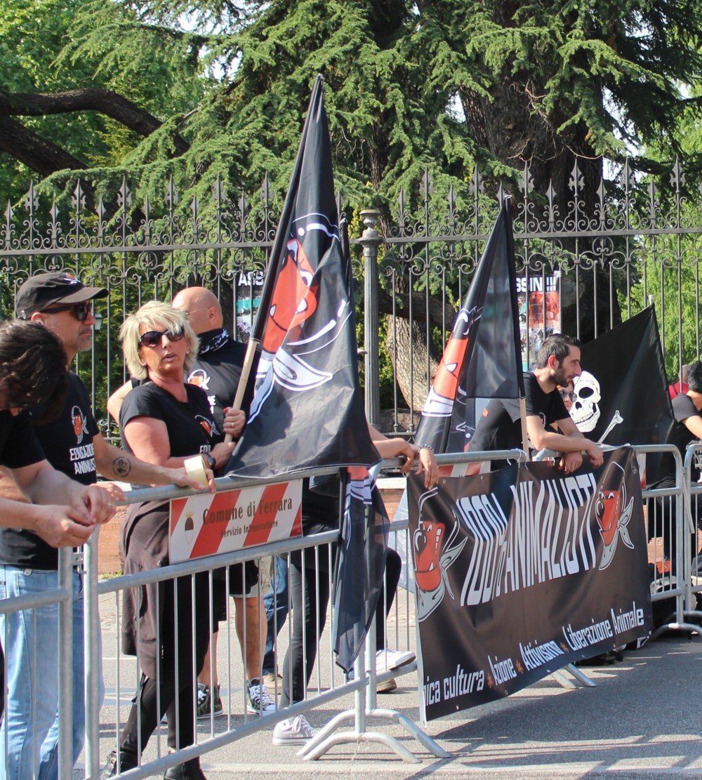 Come ogni anno, dall’edizione nella quale furono fatti morire due Cavalli, anche domenica 31 maggio i militanti di CENTOPERCENTOANIMALISTI hanno tenuto un presidio contro il palio di Ferrara, la corsa assassina in Piazza Ariostea.