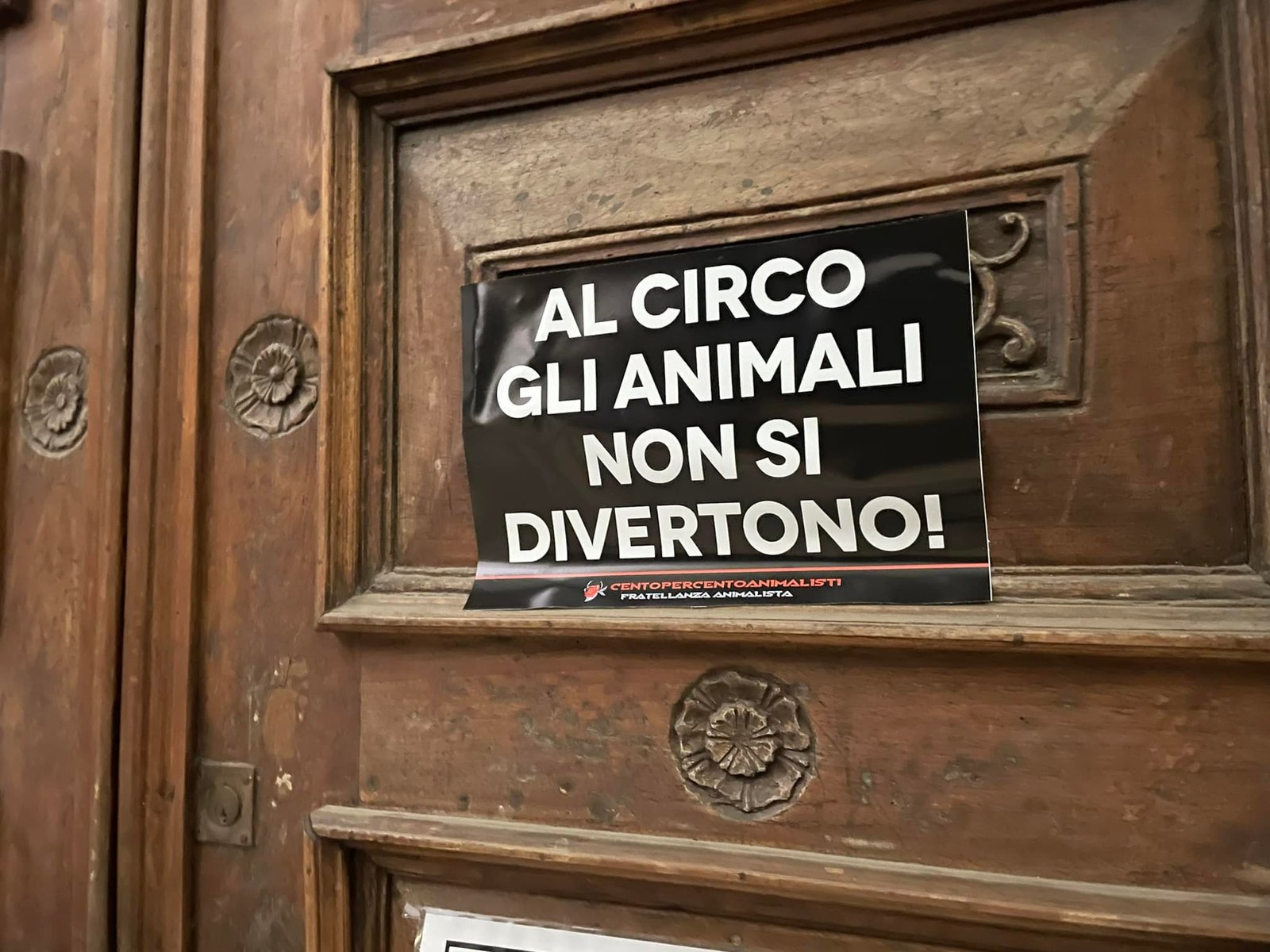 Per far capire al sindaco e la sua giunta che loro iniziativa è stata a dir poco fuori dal tempo ed imbarazzante (siamo gentili), nella serata del 26 giugno, Militanti di Centopercentoanimalisti hanno affisso locandine adesive nel paese, all’ingresso del municipio ed “oscurato” alcuni cartelloni circensi, con scritto: al circo gli Animali non si divertono!