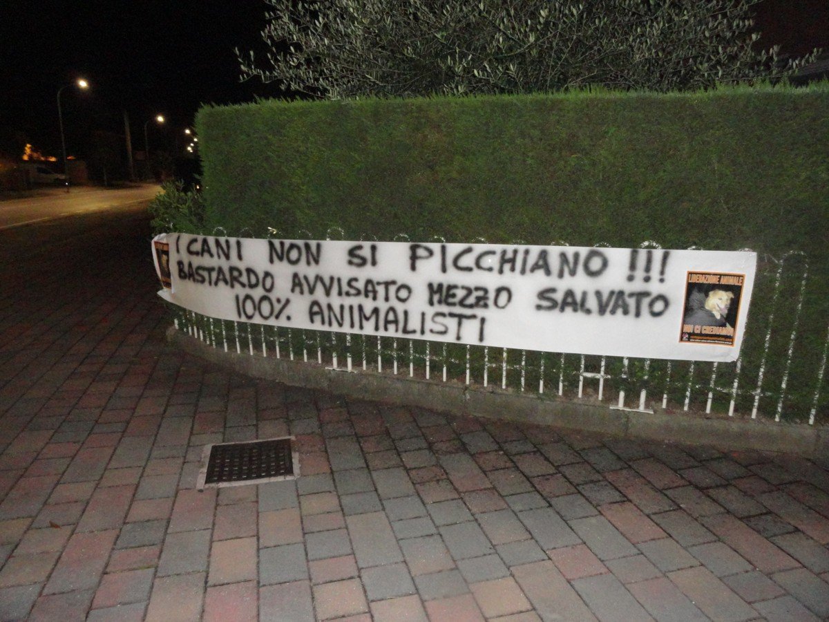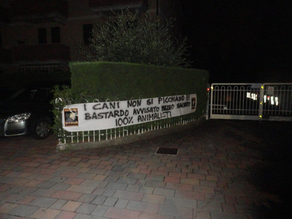 Intanto, come primo avvertimento (cui seguiranno se necessario azioni più concrete), nella notte tra il 6 e il 7 ottobre, nostri militanti hanno affisso uno striscione sul cancello della sua abitazione, il Cane dovrà essere tolto dalle sue mani prima possibile, con le buone o con le…