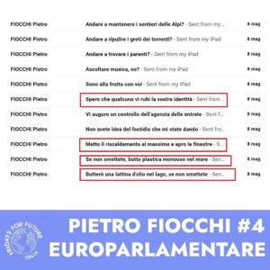15 maggio 2020 – gli ambientalisti del Fridays for Future Italia hanno bombardato di mail alcuni parlamentari Europei tra cui una nostra vecchia conoscenza, il cacciatore Pietro Fiocchi che ha dato diverse risposte, tipo “appena posso vado a sparare un animale pensando a voi” (!) questo è un parlamentare Europeo, rendiamoci conto! Riportiamo una parte del loro comunicato e relativi Screenshot dei vari messaggi del cacciatore Fiocchi, chissà perché non ci stupiamo delle risposte del “grande ambientalista cacciatore”.