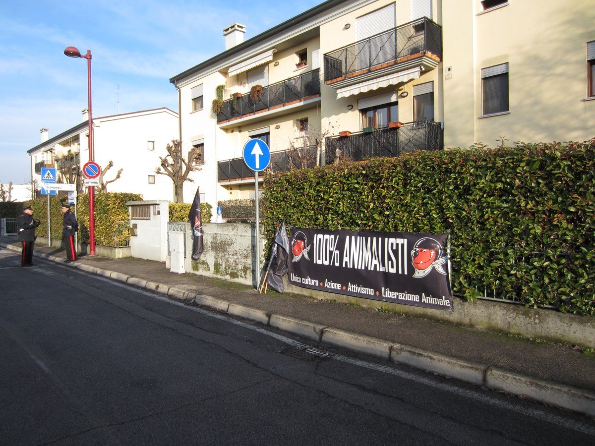 Sabato 14 gennaio dalle 15 alle 17 circa, Militanti di Centopercentoanimalisti e rappresentanti del movimento Gabbie Vuote, LAC di Padova, Animalisti indipendenti Trentini hanno presidiato l’abitazione del picchiatore della Gattara 73enne a Cadoneghe in provincia di Padova.