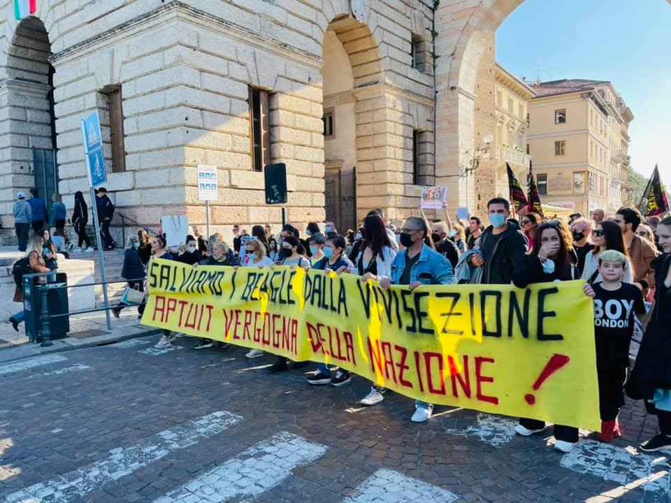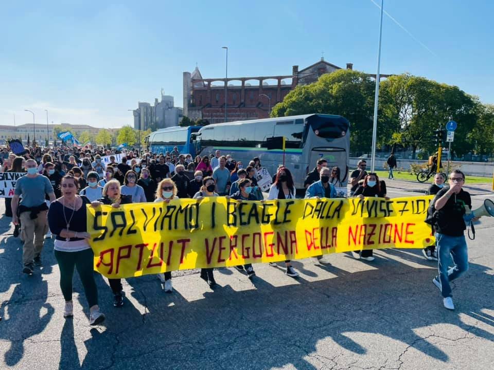 Sabato 16 ottobre a Verona si è svolto un corteo per salvare i Beagle rinchiusi al centro di sperimentazione Animale, Aptuit. Manifestazione a cui hanno partecipato 400 persone circa, di ogni età, tutti uniti con uno solo obiettivo: far sentire la voce di quelle povere Anime destinate ad esperimenti atroci fino alla fine dei loro giorni.