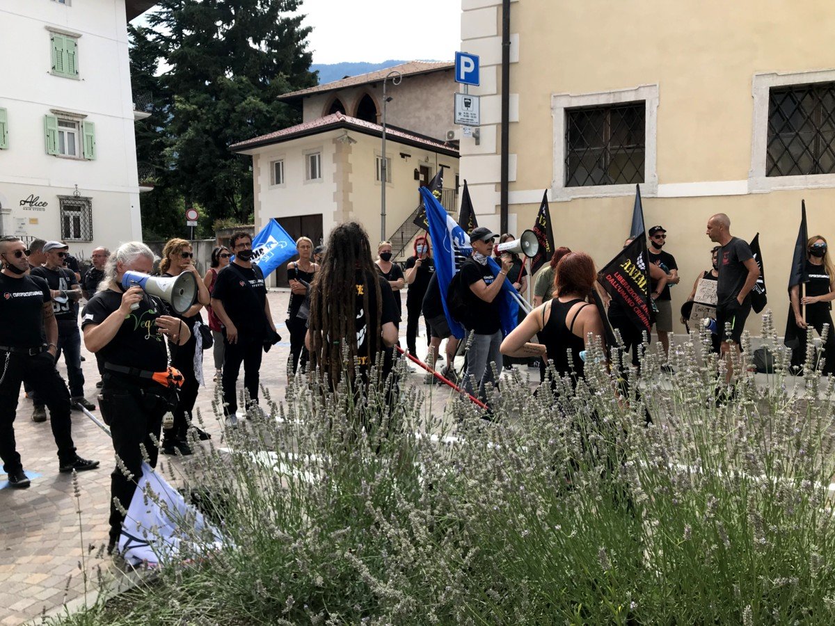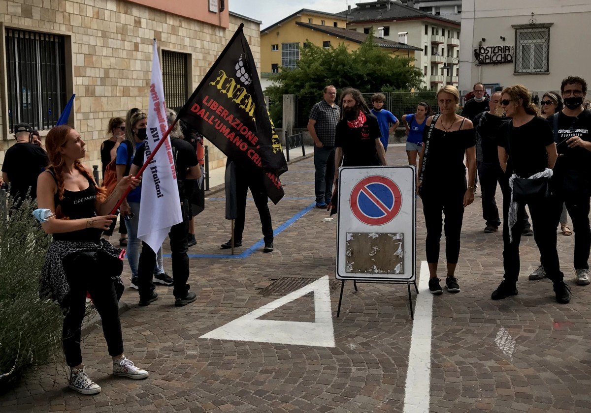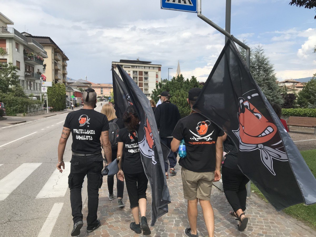 Domenica 2 agosto, Militanti della Sinergia Animalista (Centopercentoanimalisti, Fronte Animalista, Animalisti Italiani, AVI) si sono recati a Cles (Trento) per contestare le nefandezze della giunta del Trentino guidata da Fugatti. Erano presenti anche delegazioni di “ombre nel buio” e “Parma Etica”.