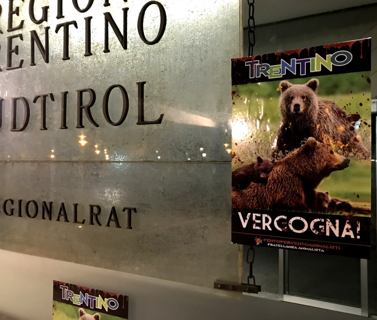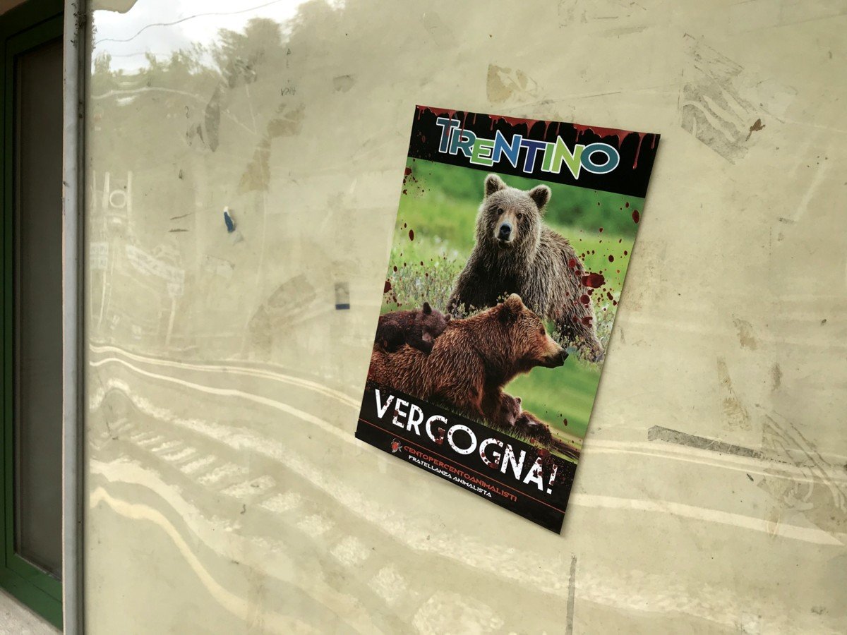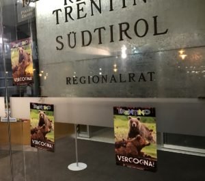 Alla sera, alcuni attivisti hanno effettuato un blitz alla sede della Regione di Trento in piazza Dante, affiggendo sulle vetrate volantini adesivi di denuncia vs il Trentino ammazza Orsi.