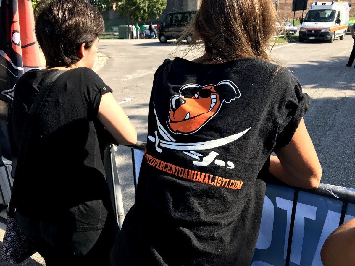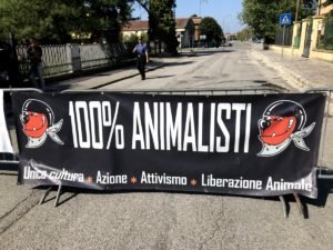 Domenica 9 settembre i militanti di CENTOPERCENTOANIMALISTI erano nuovamente a Montagnana (Padova), seppur in numero ridotto, contro il palio, la corsa dei Cavalli, che domenica scorsa era stata rinviata per il maltempo.
