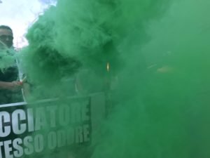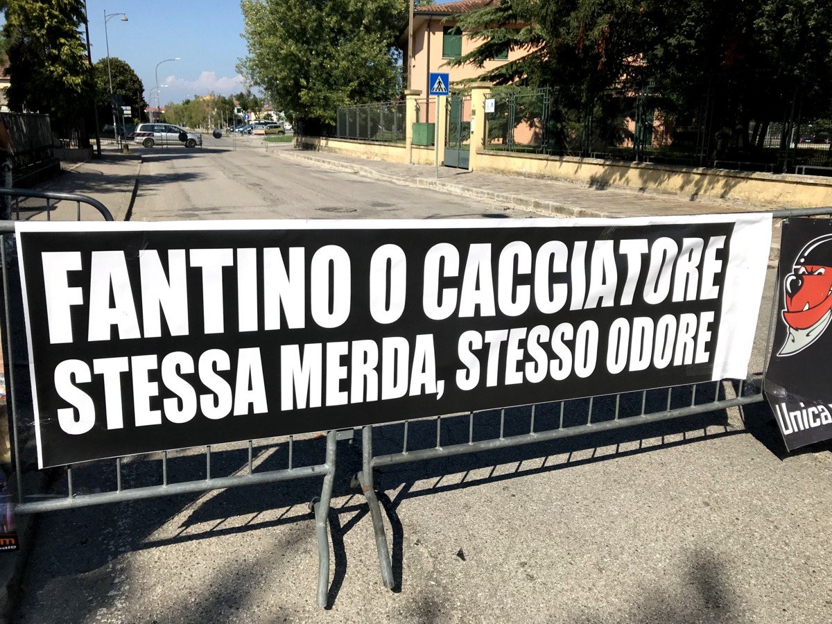 Noi siamo presenti ogni anno, e da parecchi anni: abbiamo notato nel tempo un calo di partecipanti, ma una miseria simile non si era mai vista. Non hanno neppure montato le tribune come facevano di solito! I pochi spettatori, gli organizzatori e i fantini si sono comunque presi i cori di scherno e riprovazione dei nostri militanti. Non sono mancati lanci di carta igienica.