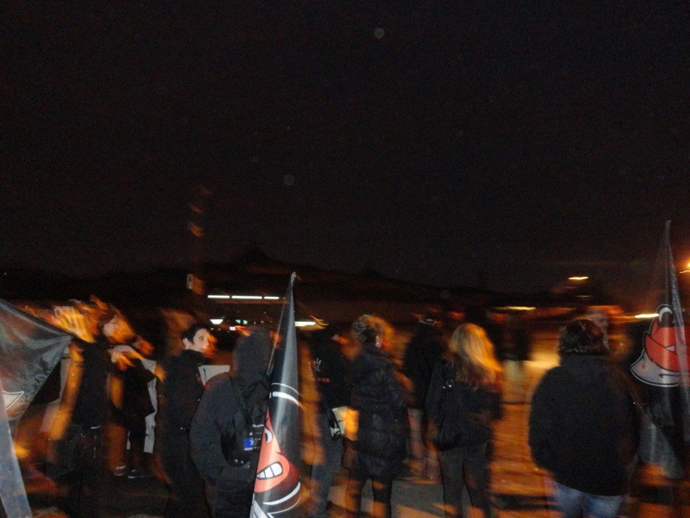 Circa una trentina di militanti con bandiere e striscioni ha gridato “Vergogna!” ai circensi e agli spettatori che entravano o uscivano. Qualche momento di tensione con chi non gradiva i nostri slogan.