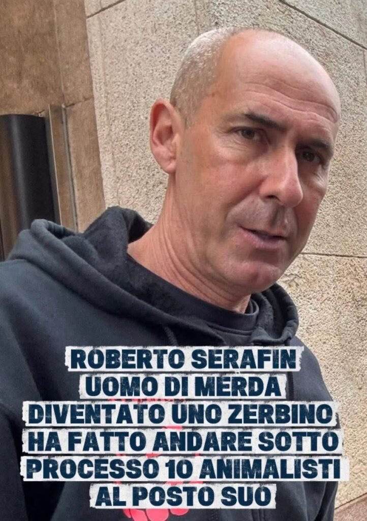 Roberto Serafin, il vile che manda a processo gli Animalisti al posto suo, questa volta l’ha fatta davvero grossa, che fosse un omino lo sapevamo, ma che fosse diventato lo zerbino delle abitanti della città del principe Paride, non ce l’aspettavamo.
