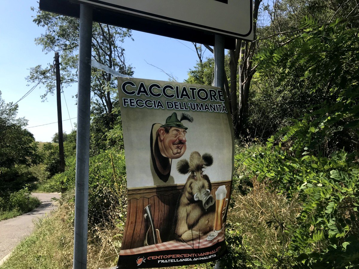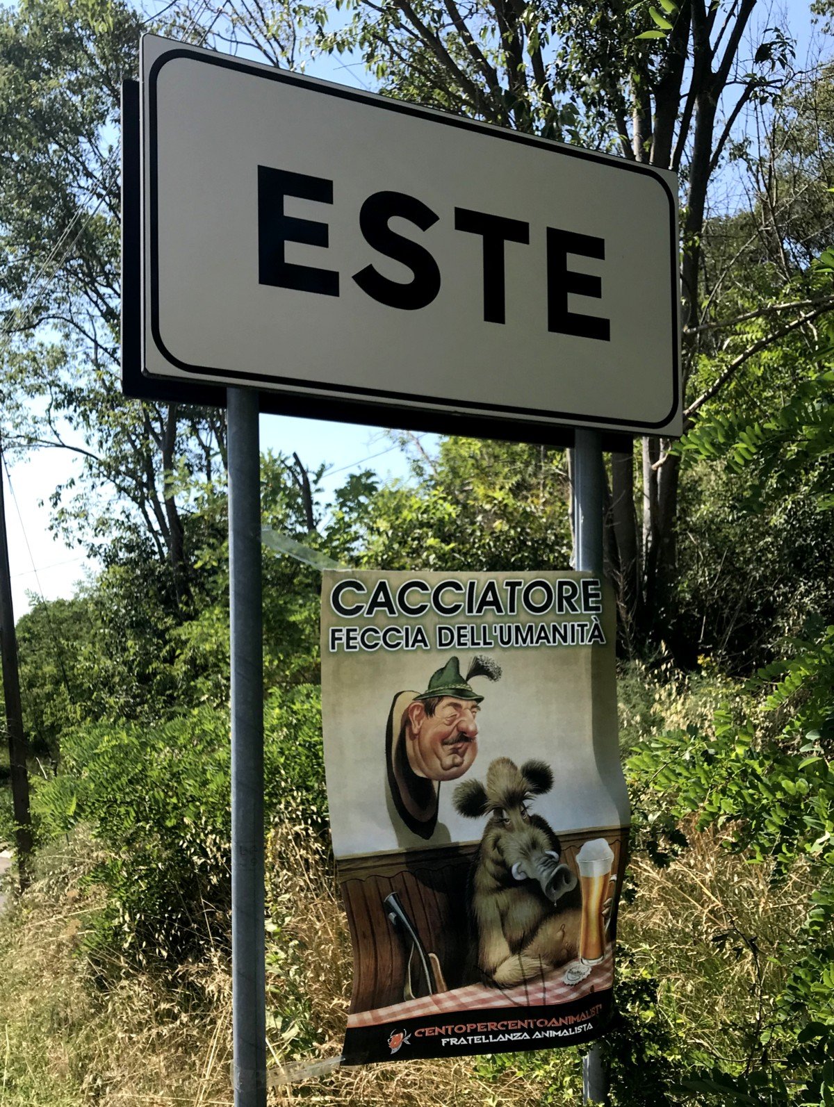 Giovedì 9 luglio in pieno giorno, Militanti di CENTOPECENTOANIMALISTI hanno effettuato una “ronda” in una zona collinare tra le più “incriminate” nei pressi del capitello di via casella ad Este nella speranza di incontrare qualche infame con licenza di uccidere, nei giorni scorsi ci sono state segnalazioni di colpi di fucile. Per far capire a questi signori che lo sterminio non sarà tollerato, i nostri Attivisti hanno affisso uno striscione che parla da solo, le “ronde” continueranno…