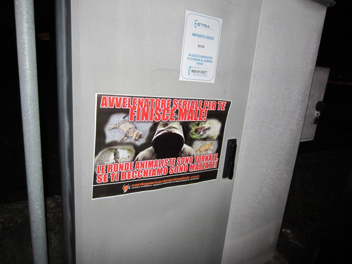 Spargere veleno è vero e proprio terrorismo. La Polizia Locale è all’opera per individuare il responsabile. Anche militanti di CENTOPERCENTOANIMALISTI stanno monitorando la zona, raccogliendo informazioni, ma soprattutto effettuando ronde notturne…