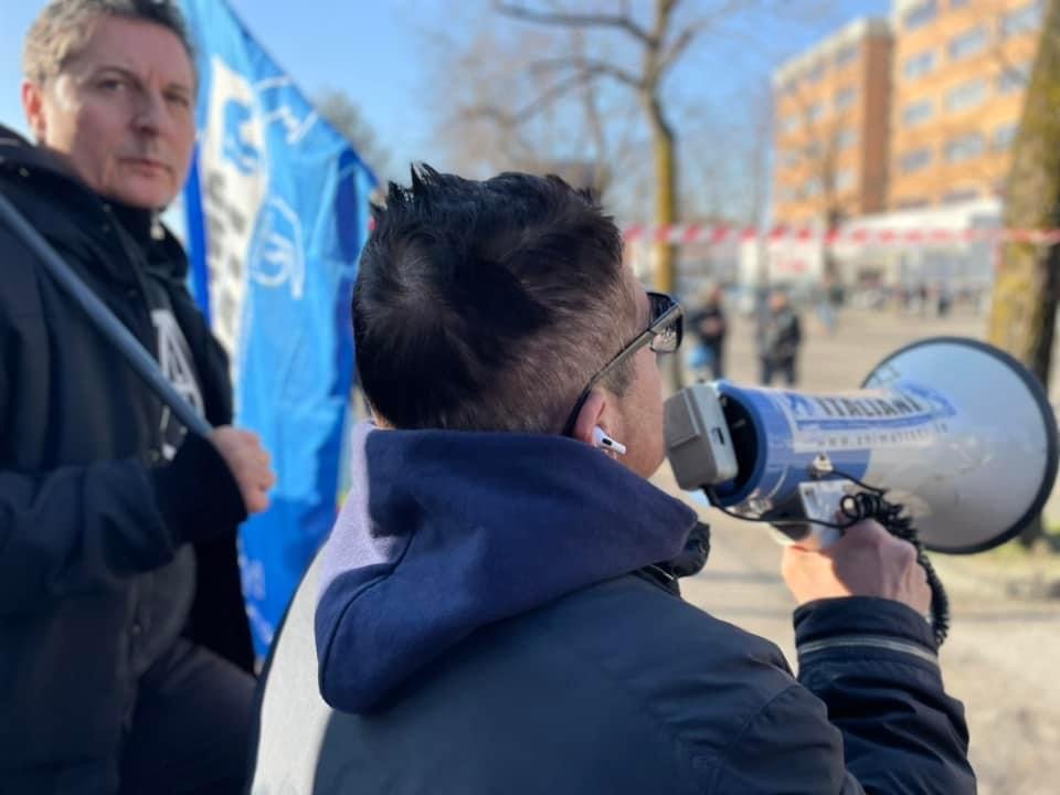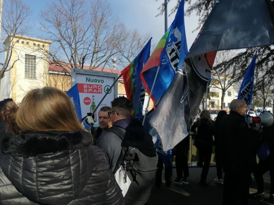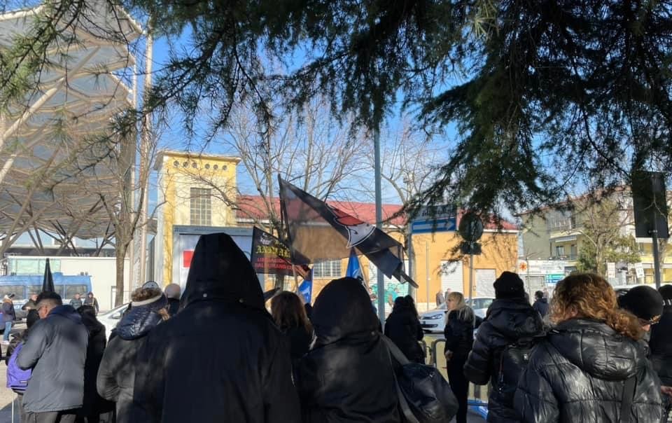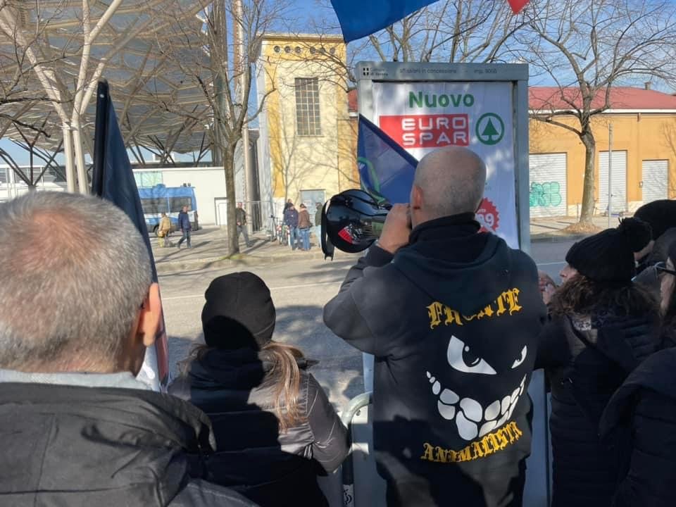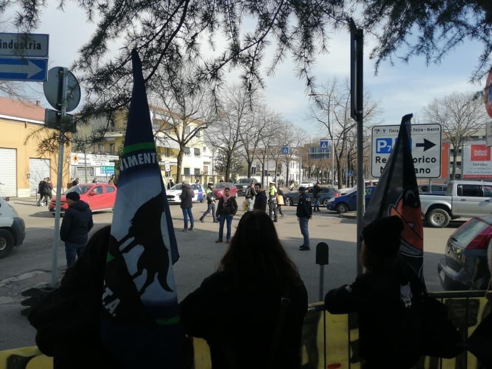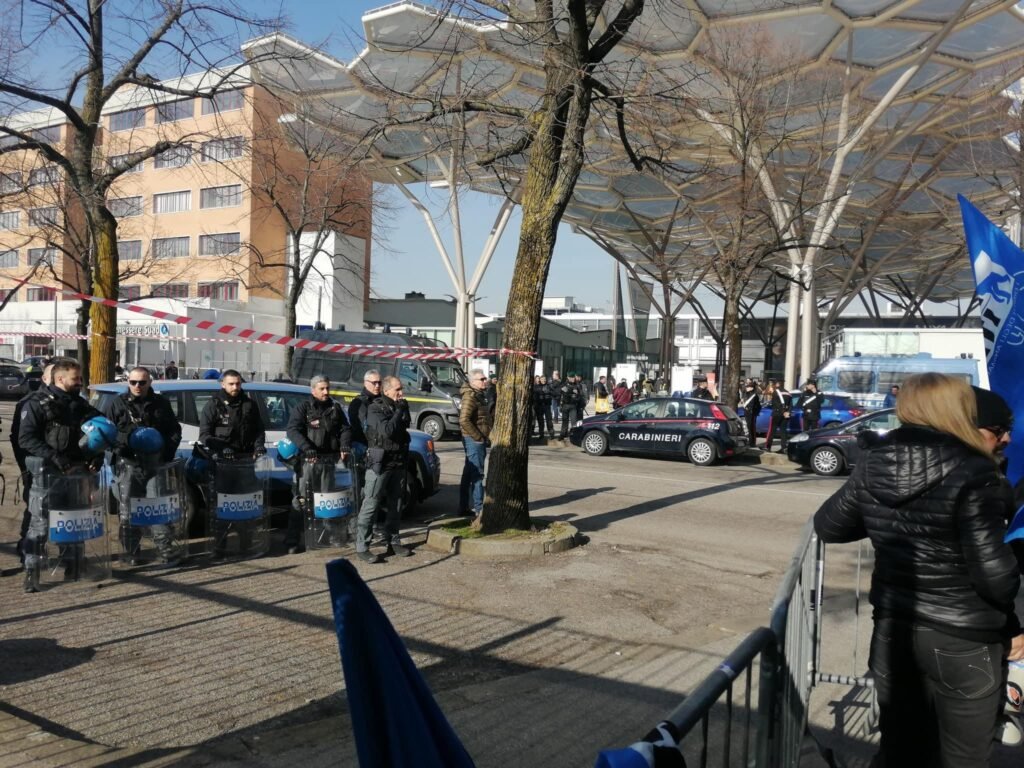 Novità di quest’anno, voluta dalla Questura: i partecipanti si sono concentrati in un punto prestabilito, e da lì sono stati portati davanti alla Fiera con un bus riservato; stessa cosa  al ritorno.