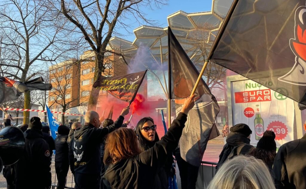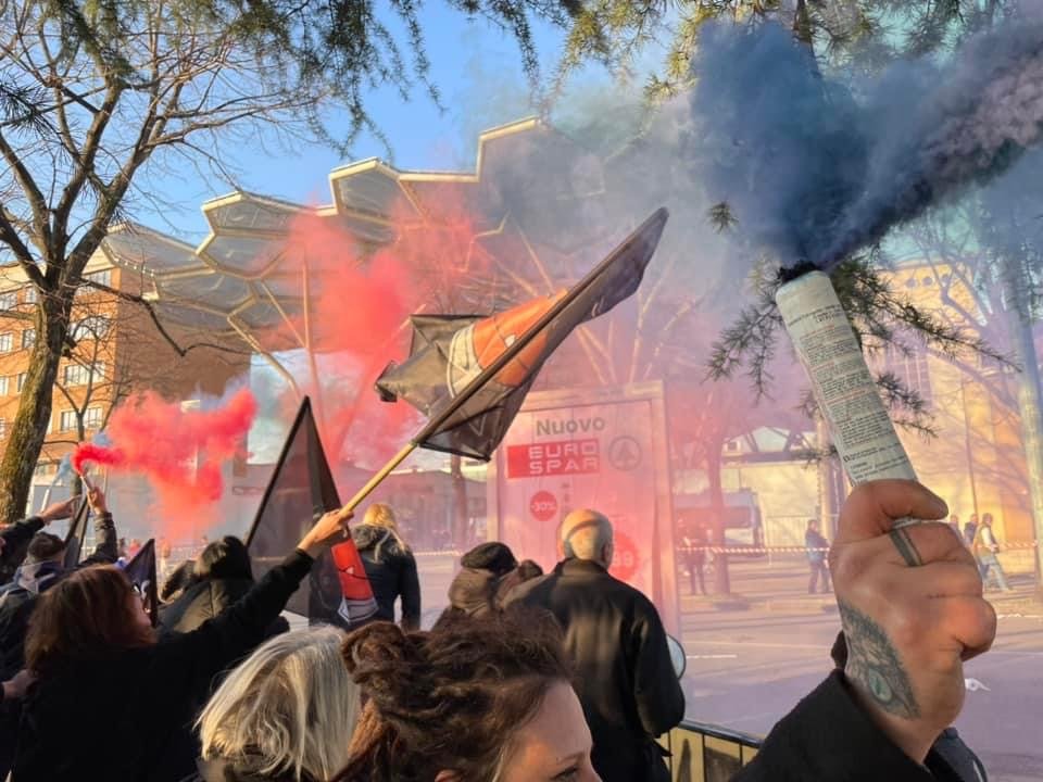 Ad un certo punto le forze dell’ordine hanno deciso di bloccare la strada e deviare il traffico delle auto a causa di alcuni lanci di fumogeni.