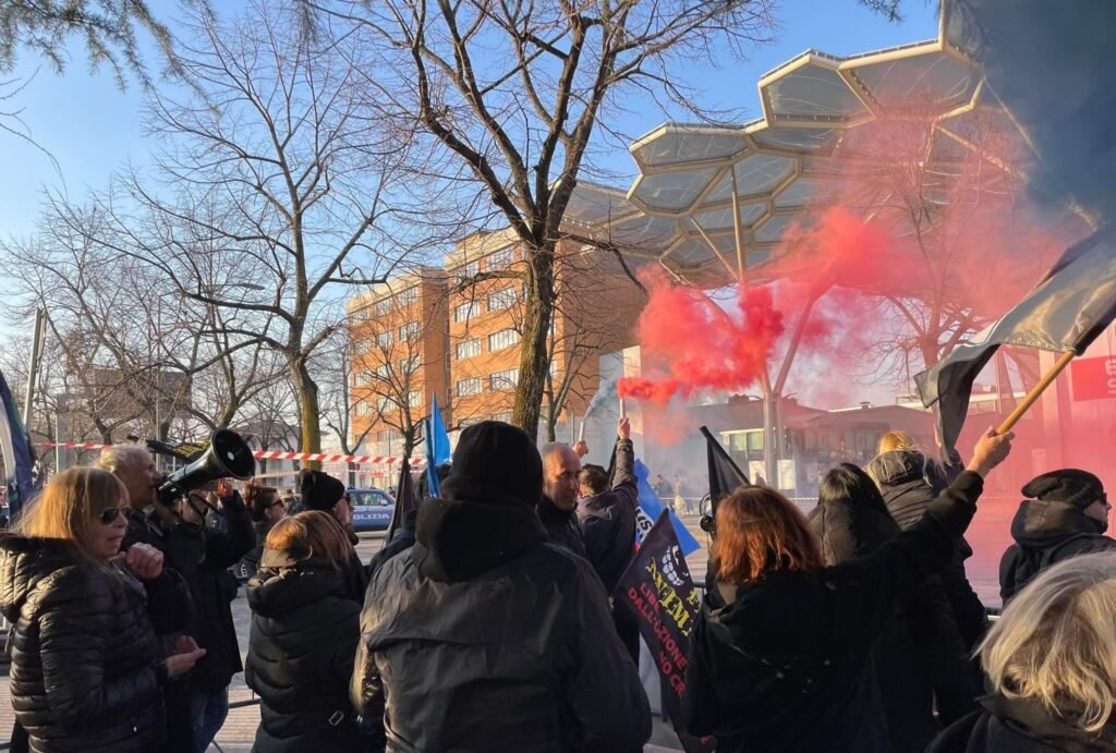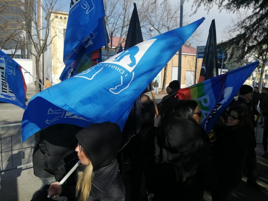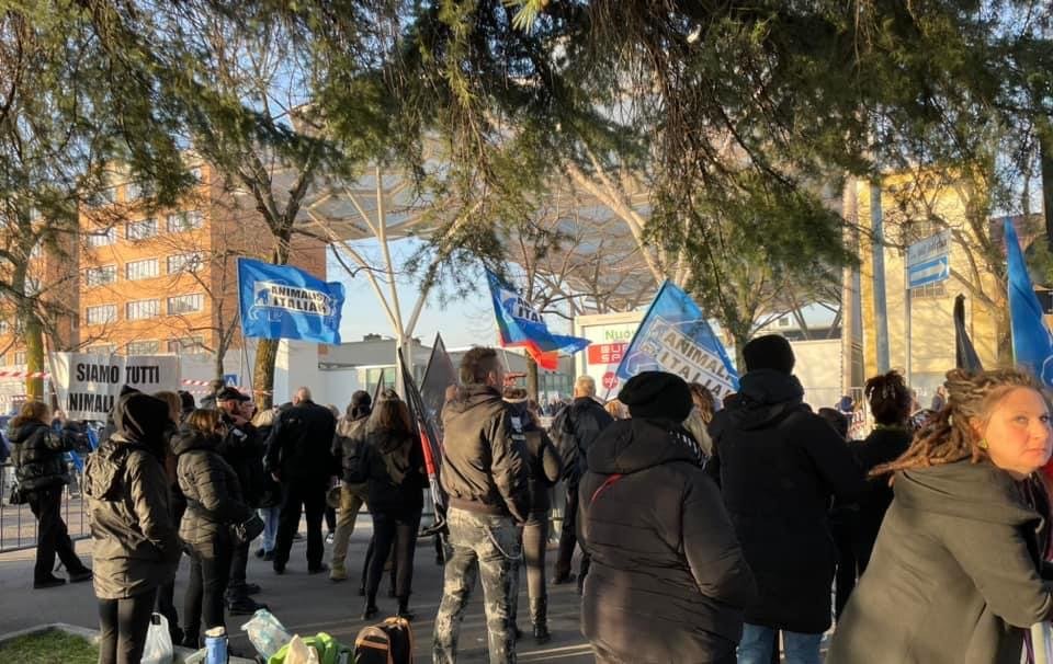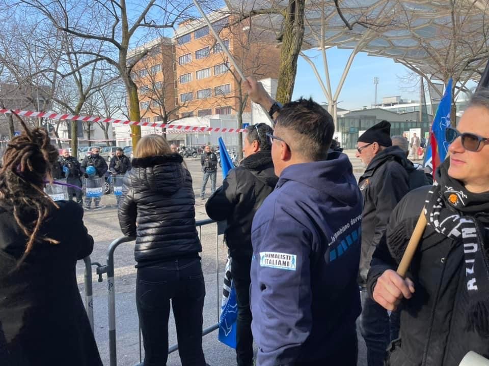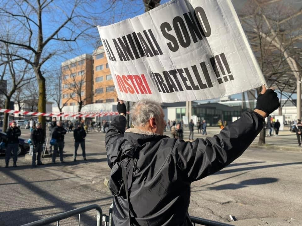 Circa 50 i militanti (Sinergia Animalista) di  varie organizzazioni presenti al  presidio contro la fiera della caccia, a Verona, sabato 11 febbraio. Centopercentoanimalisti (organizzatori), Animalisti Italiani, Fronte Animalista, Meta Pordenone activist, Attivismo Antispecista.