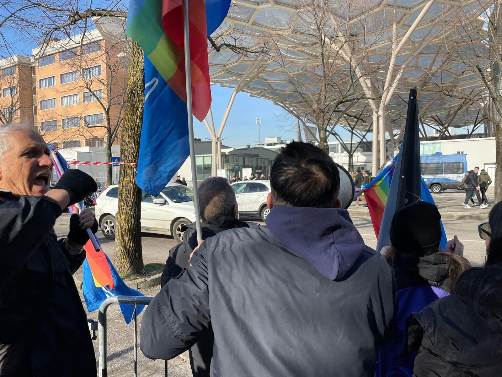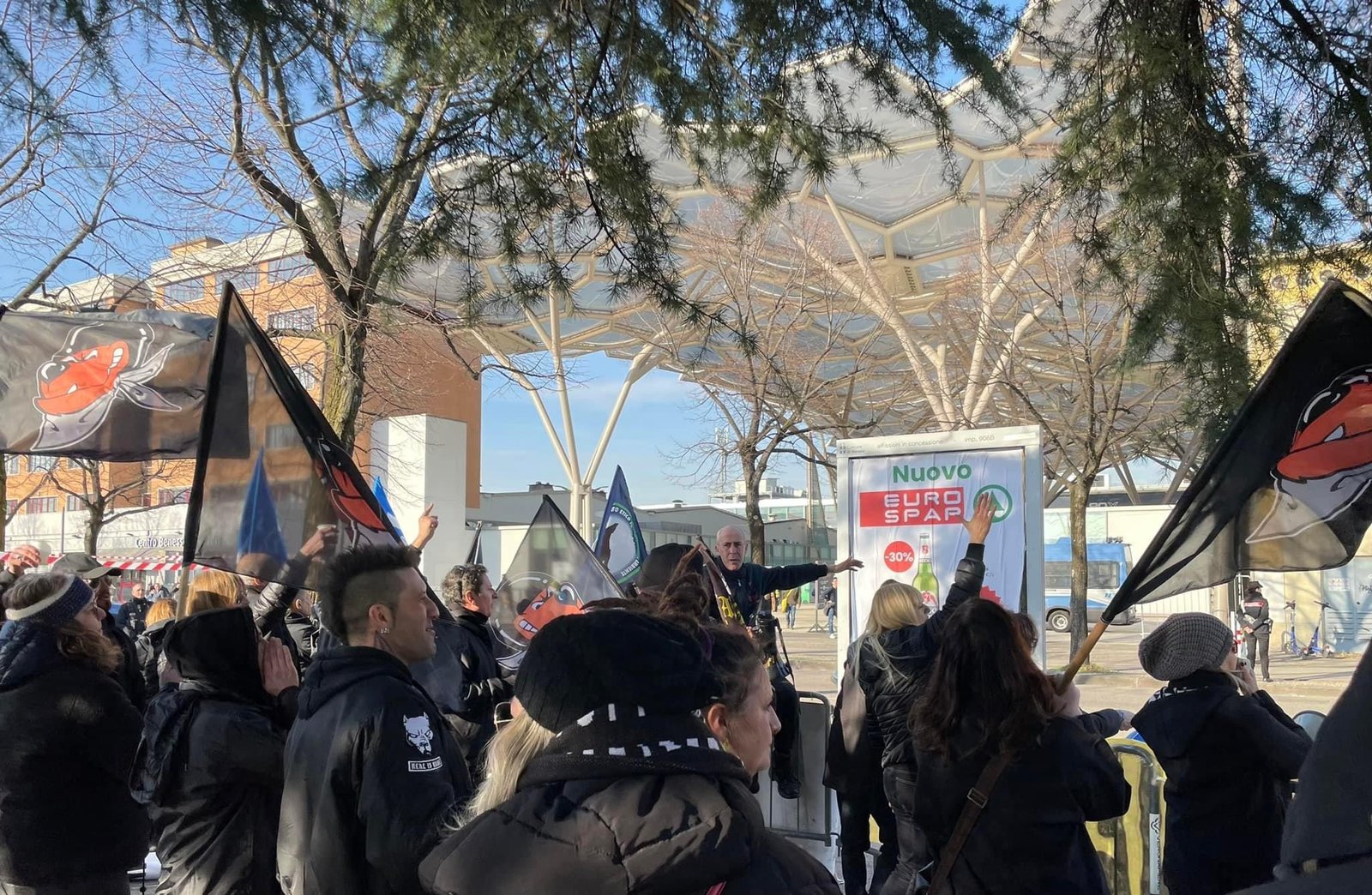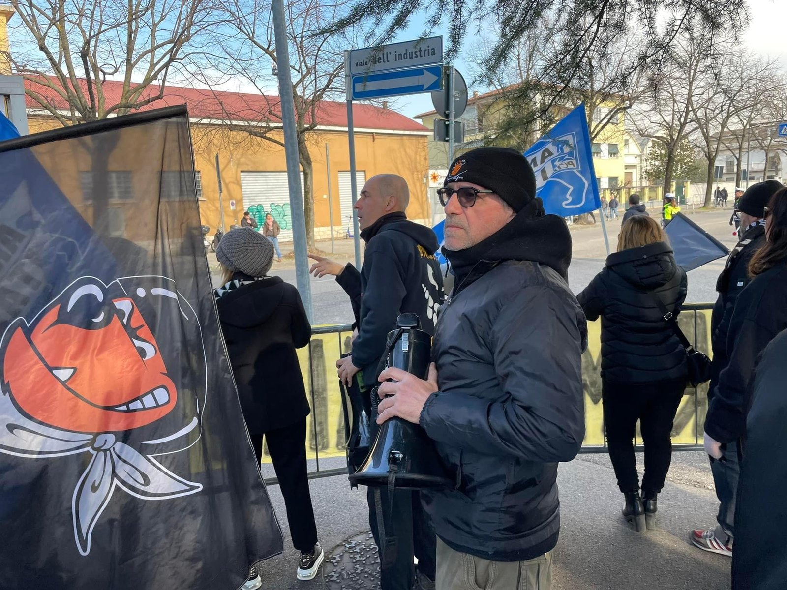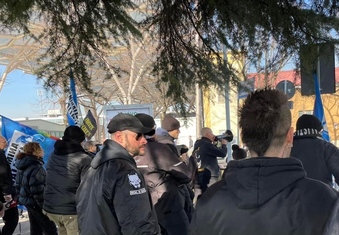 Novità di quest’anno, voluta dalla Questura: i partecipanti si sono concentrati in un punto prestabilito, e da lì sono stati portati davanti alla Fiera con un bus riservato; stessa cosa  al ritorno.